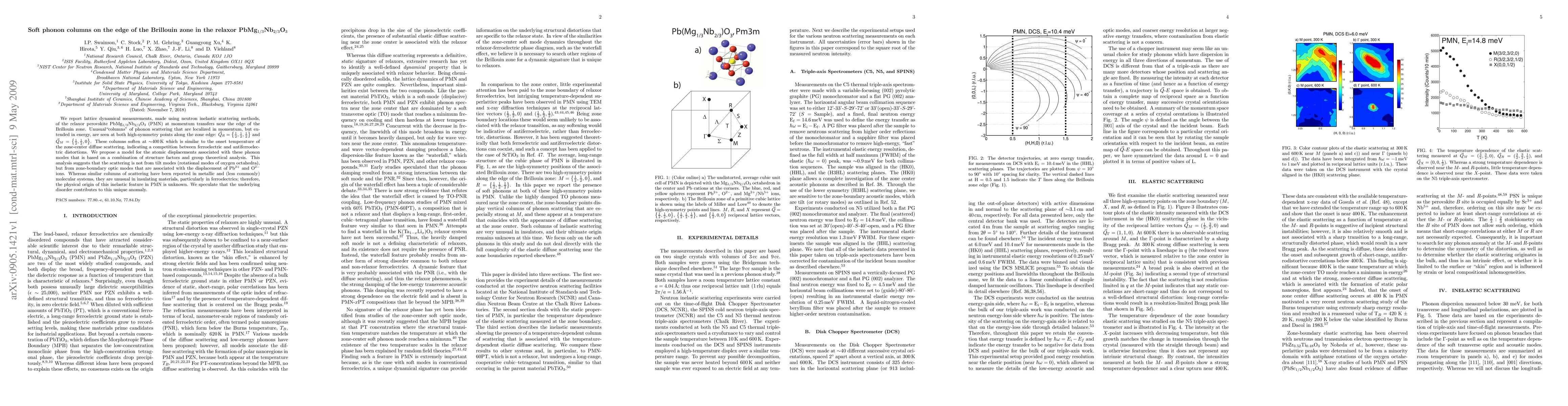 We report lattice dynamical measurements, made using neutron inelastic scattering methods, of the relaxor perovskite PbMg1/3Nb2/3O3 (PMN) at momentum transfers near the edge of the Brillouin zone. Unusual"columns" of phonon scattering that are localized in momentum, but extended in energy, are seen at both high-symmetry points along the zone edge: \vec{Q}_R={1/2, 1/2, 1/2} and \vec{Q}_M={1/2,1/2,0}. These columns soften at ~400 K which is similar to the onset temperature of the zone-center diffuse scattering, indicating a competition between ferroelectric and antiferroelectric distortions. We propose a model for the atomic displacements associated with these phonon modes that is based on a combination of structure factors and group theoretical analysis. This analysis suggests that the scattering is not from tilt modes (rotational modes of oxygen octahedra), but from zone-boundary optic modes that are associated with the displacement of Pb^{2+} and O^{2-} ions. Whereas similar columns of scattering have been reported in metallic and (less commonly) molecular systems, they are unusual in insulating materials, particularly in ferroelectrics; therefore, the physical origin of this inelastic feature in PMN is unknown. We speculate that the underlying disorder contributes to this unique anomaly.