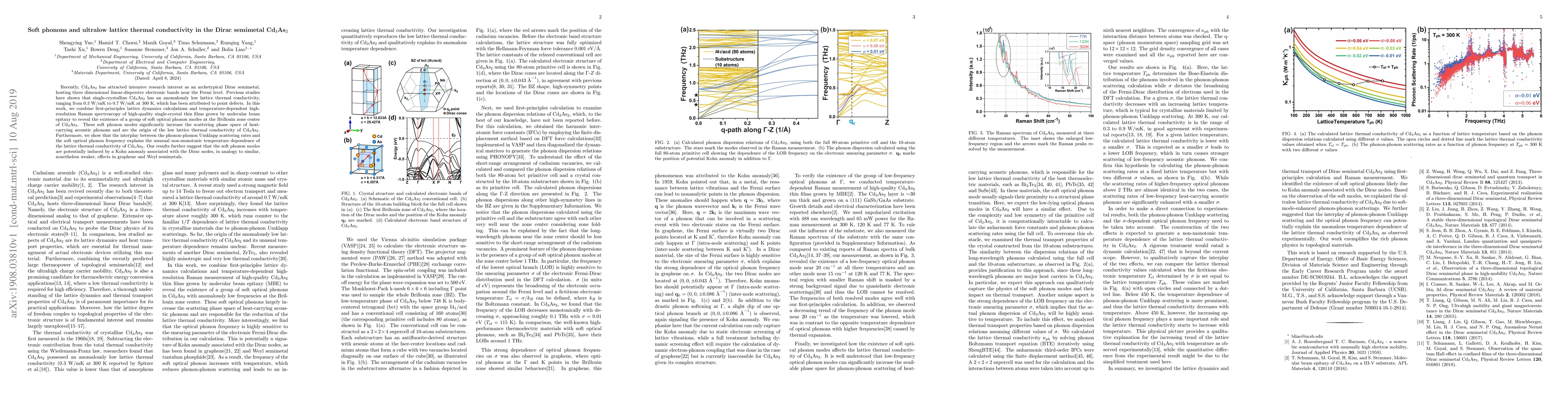 This paper reveals that soft optical phonon modes at the Brillouin zone center in Cd3As2 are responsible for its ultralow lattice thermal conductivity, attributed to increased phonon scattering. The study combines computational and experimental methods to show that these phonons, possibly linked to a Kohn anomaly near Dirac nodes, lead to a non-monotonic temperature dependence of thermal conductivity.