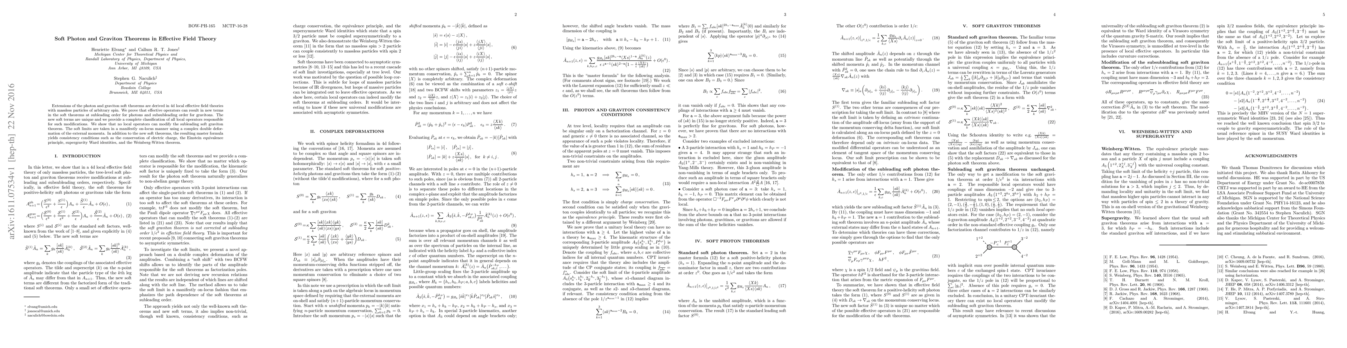 Extensions of the photon and graviton soft theorems are derived in 4d local effective field theories with massless particles of arbitrary spin. We prove that effective operators can result in new terms in the soft theorems at subleading order for photons and subsubleading order for gravitons. The new soft terms are unique and we provide a complete classification of all local operators responsible for such modifications. We show that no local operators can modify the subleading soft graviton theorem. The soft limits are taken in a manifestly on-locus manner using a complex double deformation of the external momenta. In addition to the new soft theorems, the resulting master formula yields consistency conditions such as the conservation of electric charge, the Einstein equivalence principle, supergravity Ward identities, and the Weinberg-Witten theorem.