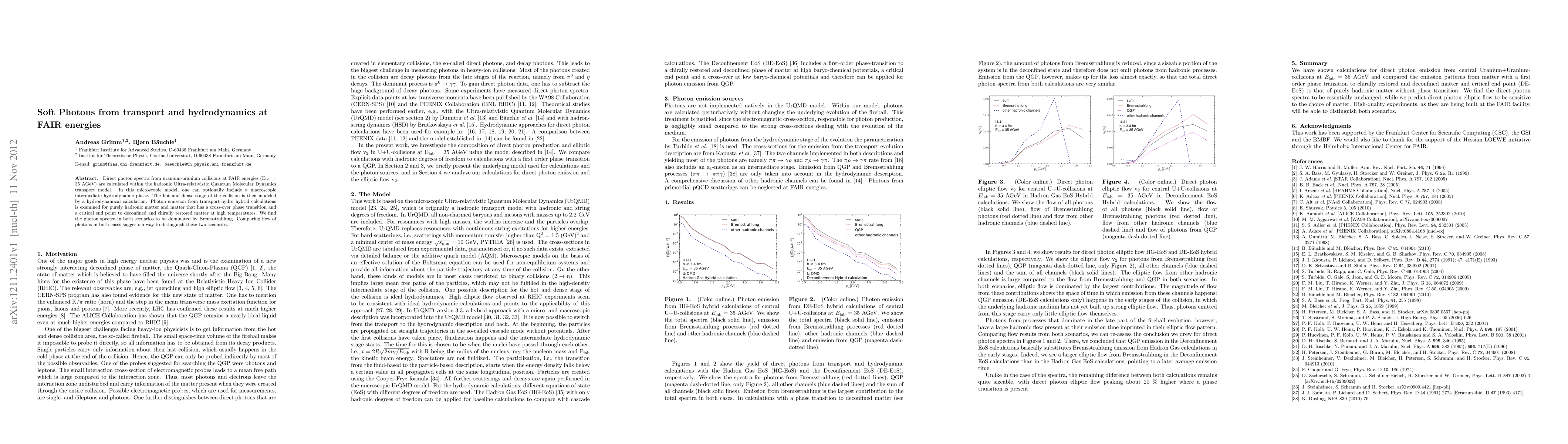 This paper investigates direct photon spectra from uranium-uranium collisions at FAIR energies using a transport model with optional hydrodynamic phases. Photon emission is dominated by Bremsstrahlung, and comparing photon flow in hadronic and crossover scenarios offers a method to distinguish between them.