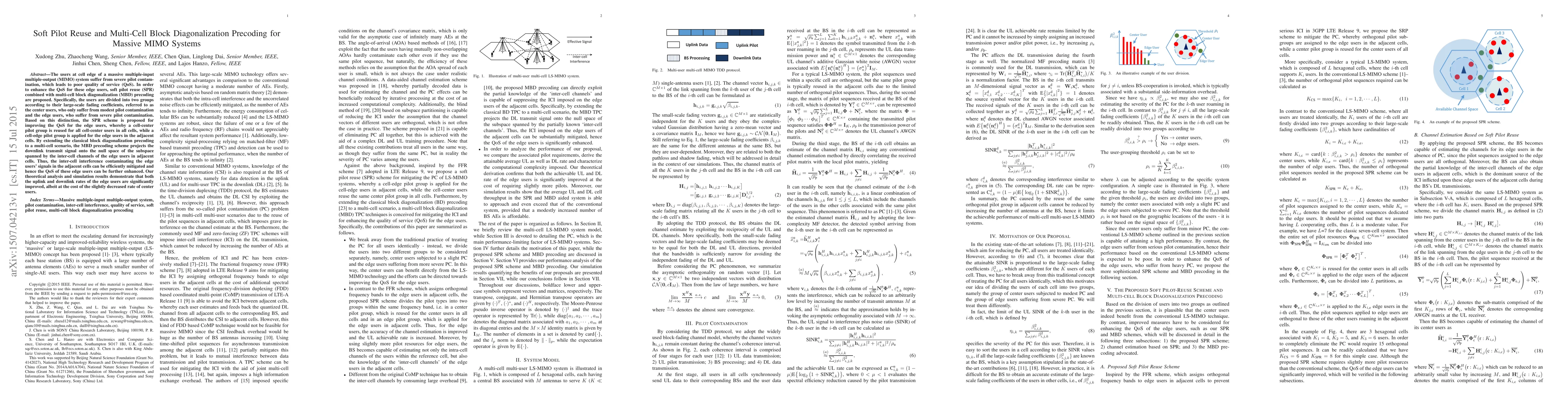 This paper proposes soft pilot reuse (SPR) and multi-cell block diagonalization (MBD) precoding to enhance the quality of service (QoS) for edge users in massive MIMO systems. The SPR scheme divides users into center and edge groups, reusing cell-center pilots for center users and cell-edge pilots for edge users in adjacent cells. MBD precoding mitigates inter-cell interference for edge users, significantly improving their uplink and downlink rates while slightly reducing the rate of center users.