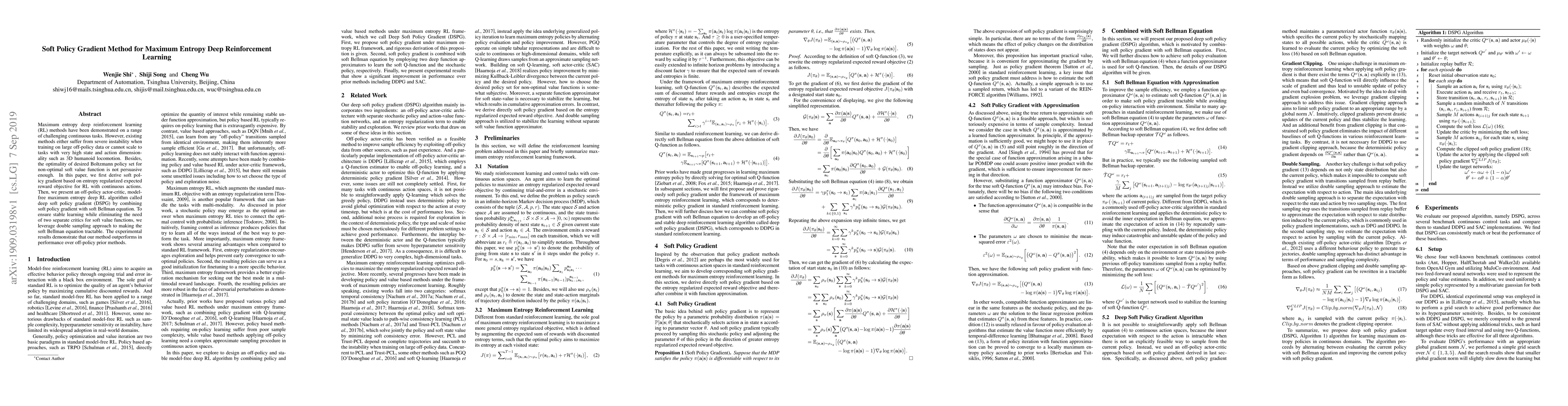 This paper introduces a new off-policy actor-critic algorithm called deep soft policy gradient (DSPG) for maximum entropy deep reinforcement learning with continuous actions. DSPG combines soft policy gradient and a soft Bellman equation, ensuring stable learning and scalability to high-dimensional tasks, outperforming prior methods in experiments.