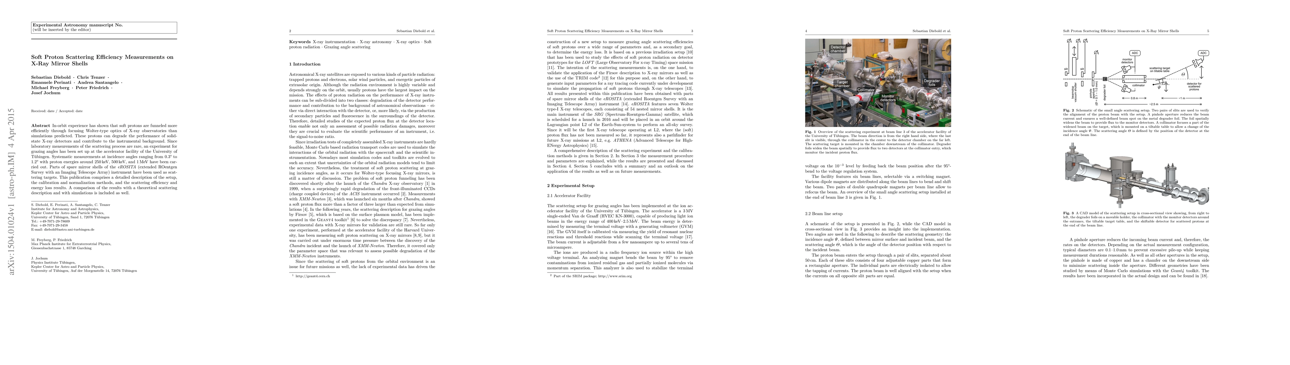 This paper reports on experimental measurements of soft proton scattering efficiency on X-ray mirror shells, using spare parts from the eROSITA instrument, conducted at the University of Tübingen's accelerator facility. The results are compared with theoretical models and simulations to better understand proton-induced degradation in X-ray observatories.