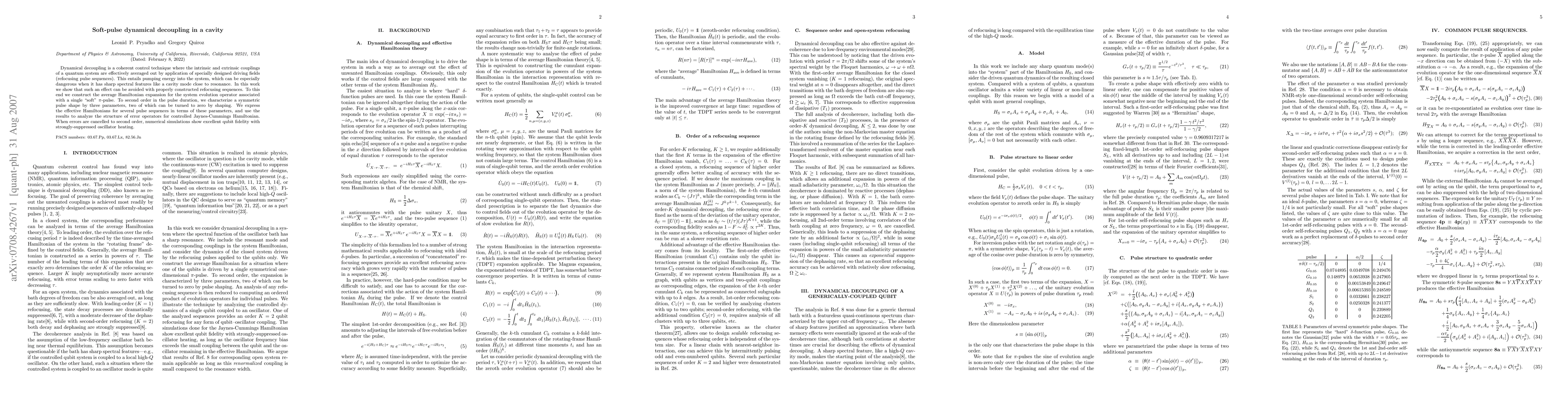 This paper proposes a method for soft-pulse dynamical decoupling to avoid energy pumping in quantum systems, particularly cavities, by using specially designed refocusing pulse sequences. The authors construct an average Hamiltonian for a single "soft" pi-pulse and demonstrate that errors can be cancelled to second order, achieving high qubit fidelity with minimal oscillator heating.