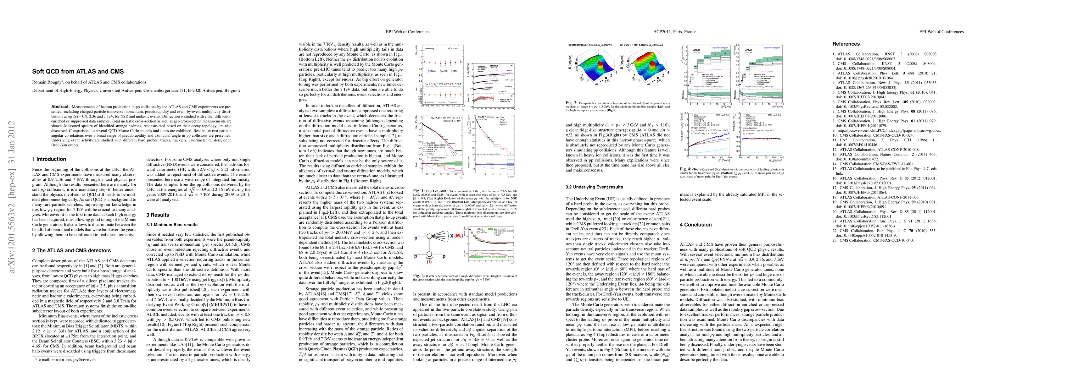This paper presents measurements from ATLAS and CMS experiments on hadron production in proton-proton collisions at various energies, focusing on transverse momentum, pseudorapidity, and multiplicity distributions. It also explores diffraction, inelastic cross-sections, and strange hadron spectra, comparing results to QCD models and examining underlying event activity.