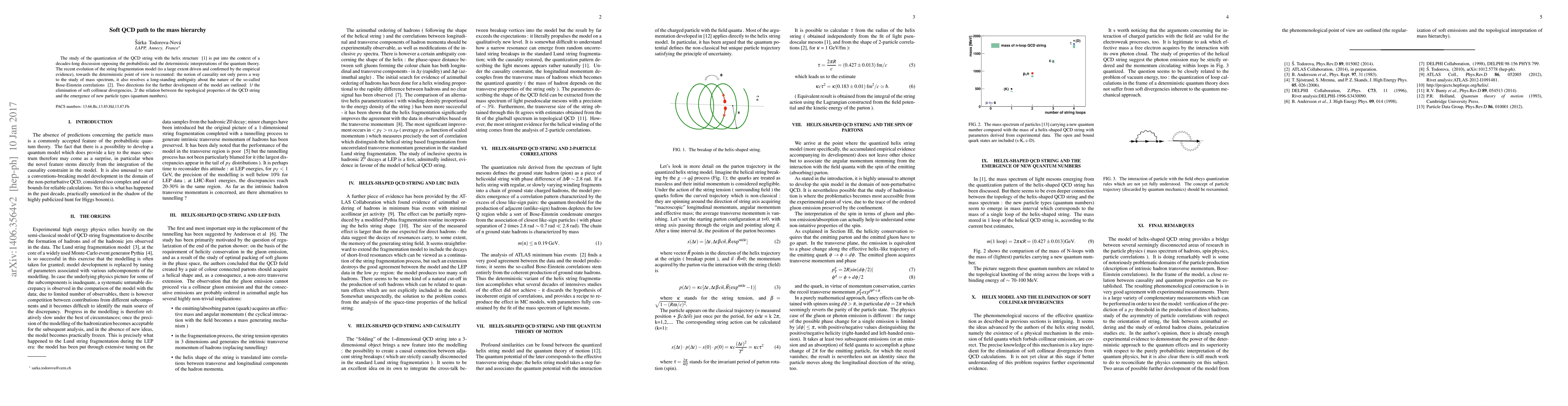 The study of the quantization of the QCD string with the helix structure is put into the context of a decades-long discussion opposing the probabilistic and the deterministic interpretations of the quantum theory. The recent evolution of the string fragmentation model (to a large extent driven and confirmed by the empirical evidence), towards the deterministic point of view is recounted: the notion of causality not only paves a way to the study of mass spectrum, it also resolves a long-standing ambiguity about the nature of the so-called Bose-Einstein correlations. Two directions for the further development of the model are outlined: 1/ the elimination of soft collinear divergencies, 2/ the relation between the topological properties of the QCD string and the emergence of new particle types (quantum numbers).