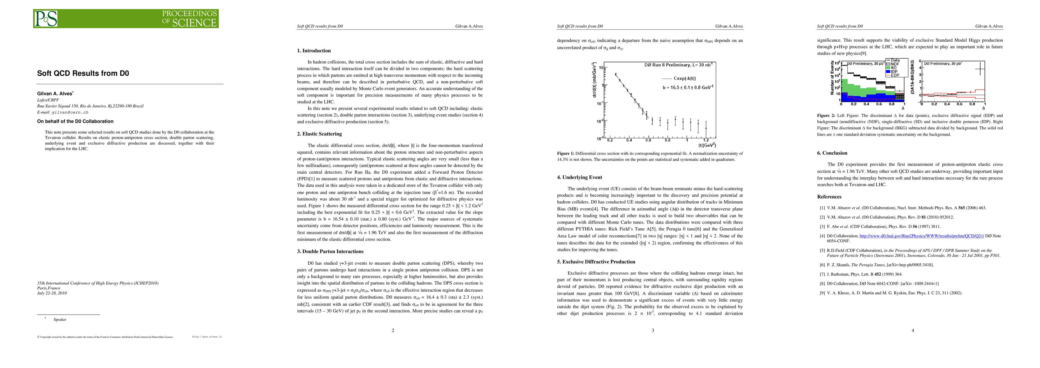 This paper summarizes key findings from the D0 collaboration on soft QCD processes at the Tevatron, including elastic proton-antiproton cross sections, double parton scattering, underlying event characteristics, and exclusive diffractive production, with implications for future LHC studies.
