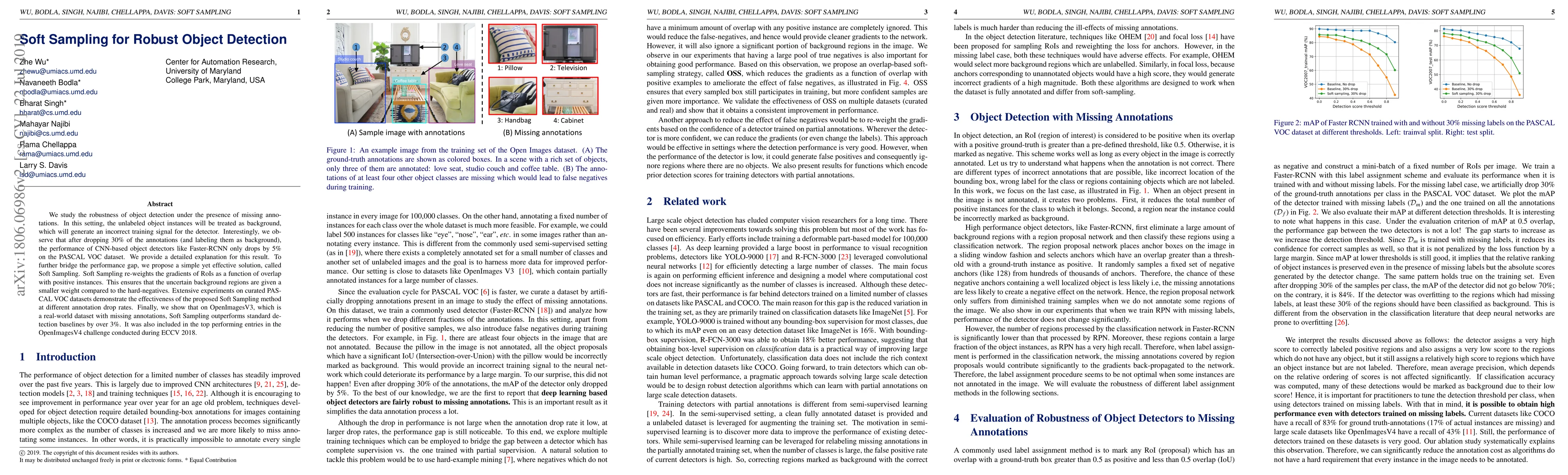 We study the robustness of object detection under the presence of missing annotations. In this setting, the unlabeled object instances will be treated as background, which will generate an incorrect training signal for the detector. Interestingly, we observe that after dropping 30% of the annotations (and labeling them as background), the performance of CNN-based object detectors like Faster-RCNN only drops by 5% on the PASCAL VOC dataset. We provide a detailed explanation for this result. To further bridge the performance gap, we propose a simple yet effective solution, called Soft Sampling. Soft Sampling re-weights the gradients of RoIs as a function of overlap with positive instances. This ensures that the uncertain background regions are given a smaller weight compared to the hardnegatives. Extensive experiments on curated PASCAL VOC datasets demonstrate the effectiveness of the proposed Soft Sampling method at different annotation drop rates. Finally, we show that on OpenImagesV3, which is a real-world dataset with missing annotations, Soft Sampling outperforms standard detection baselines by over 3%.