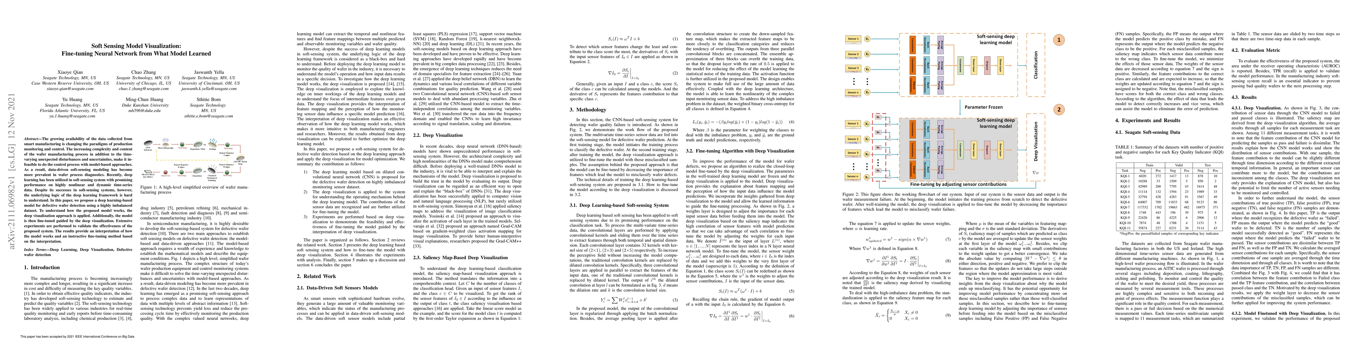 The growing availability of the data collected from smart manufacturing is changing the paradigms of production monitoring and control. The increasing complexity and content of the wafer manufacturing process in addition to the time-varying unexpected disturbances and uncertainties, make it infeasible to do the control process with model-based approaches. As a result, data-driven soft-sensing modeling has become more prevalent in wafer process diagnostics. Recently, deep learning has been utilized in soft sensing system with promising performance on highly nonlinear and dynamic time-series data. Despite its successes in soft-sensing systems, however, the underlying logic of the deep learning framework is hard to understand. In this paper, we propose a deep learning-based model for defective wafer detection using a highly imbalanced dataset. To understand how the proposed model works, the deep visualization approach is applied. Additionally, the model is then fine-tuned guided by the deep visualization. Extensive experiments are performed to validate the effectiveness of the proposed system. The results provide an interpretation of how the model works and an instructive fine-tuning method based on the interpretation.