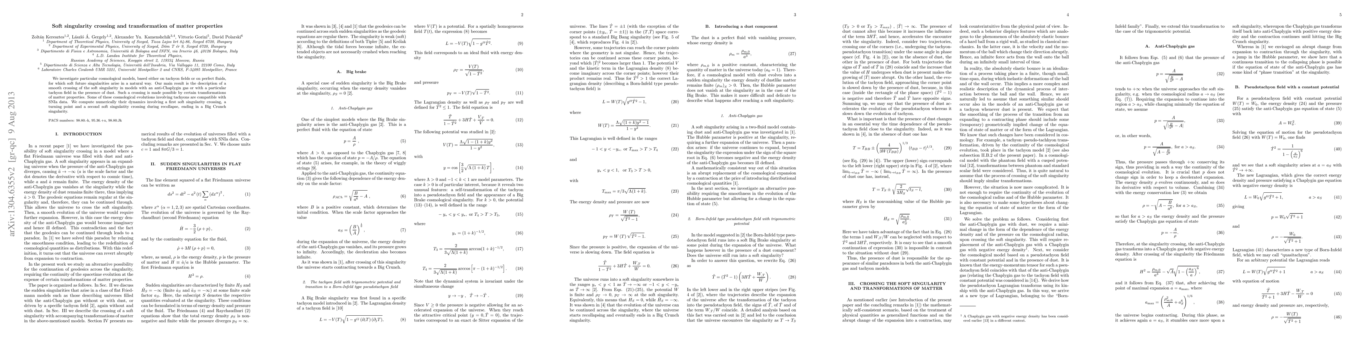 This paper explores cosmological models featuring soft future singularities, particularly those involving tachyon fields or perfect fluids. It describes a smooth transition across these singularities, facilitated by transformations in matter properties, and finds compatibility with SNIa data in some cases.