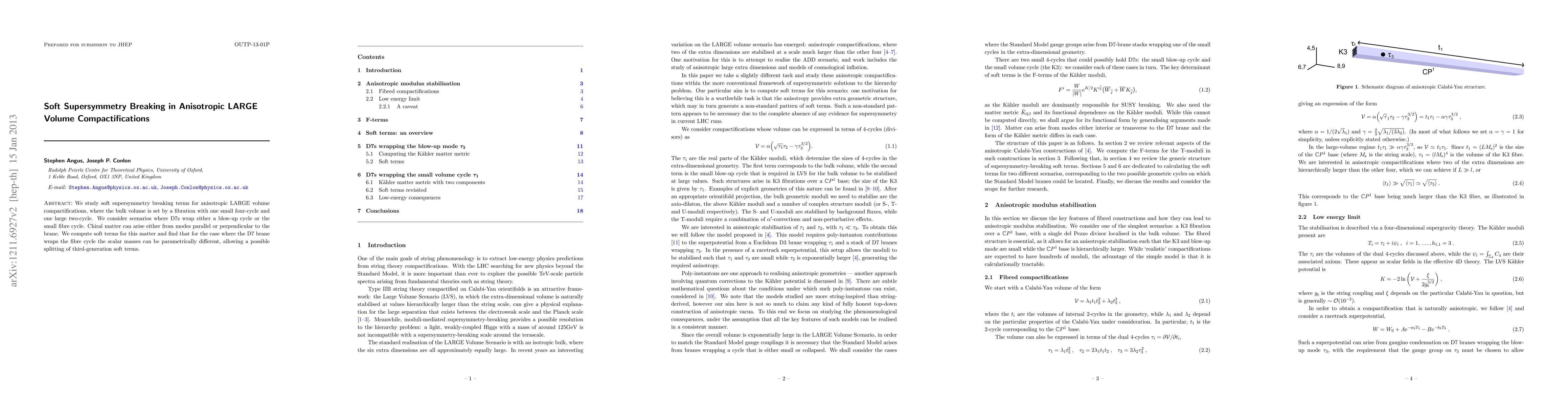 This paper investigates soft supersymmetry breaking terms in anisotropic LARGE volume compactifications, focusing on D7 branes wrapping different cycles. It finds that when D7s wrap the small fibre cycle, scalar masses can differ significantly, potentially leading to distinct third-generation soft terms.