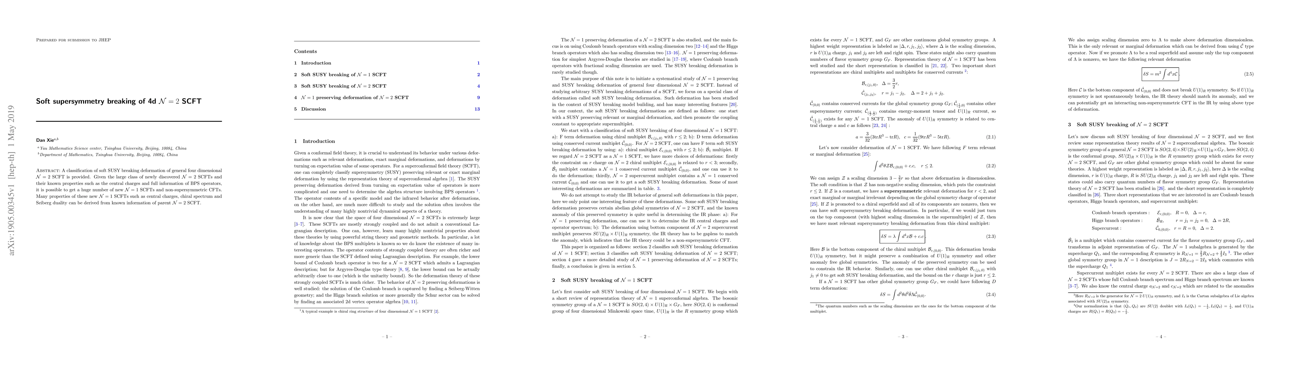 A classification of soft SUSY breaking deformation of general four dimensional $\mathcal{N}=2$ SCFT is provided. Given the large class of newly discovered $\mathcal{N}=2$ SCFTs and their known properties such as the central charges and full information of BPS operators, it is possible to get a huge number of new $\mathcal{N}=1$ SCFTs and non-supersymmetric CFTs. Many properties of these new $\mathcal{N}=1$ SCFTs such as central charges, chiral spectrum and Seiberg duality can be derived from known information of parent $\mathcal{N}=2$ SCFT.
