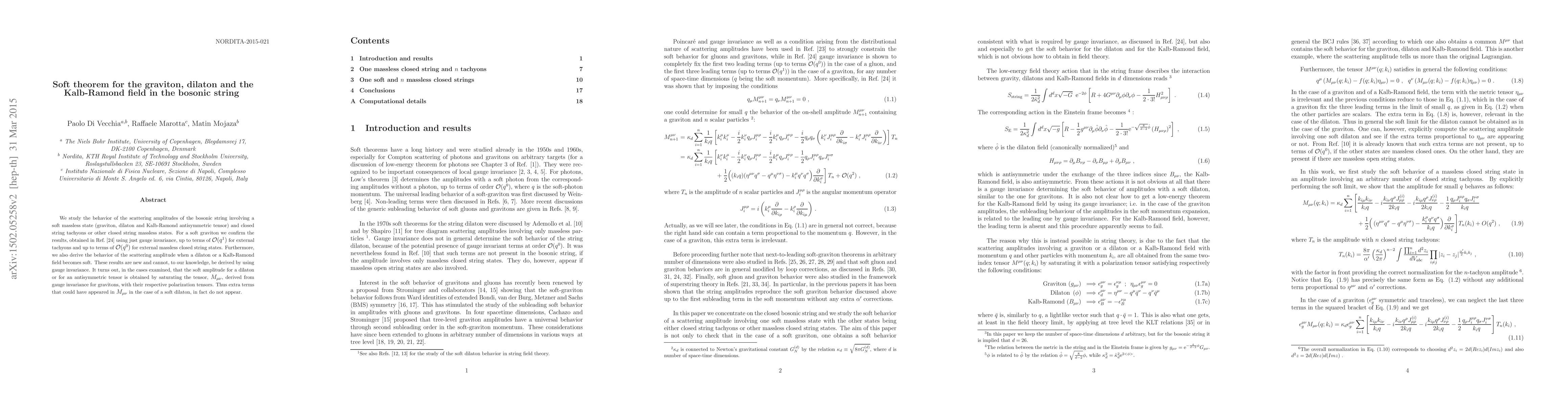This paper confirms the soft theorem for the graviton in bosonic string theory and extends it to the dilaton and Kalb-Ramond fields, deriving new results for their soft behavior. The soft amplitude for dilaton and Kalb-Ramond fields is obtained by saturating the tensor derived from gauge invariance for gravitons with their respective polarization tensors.