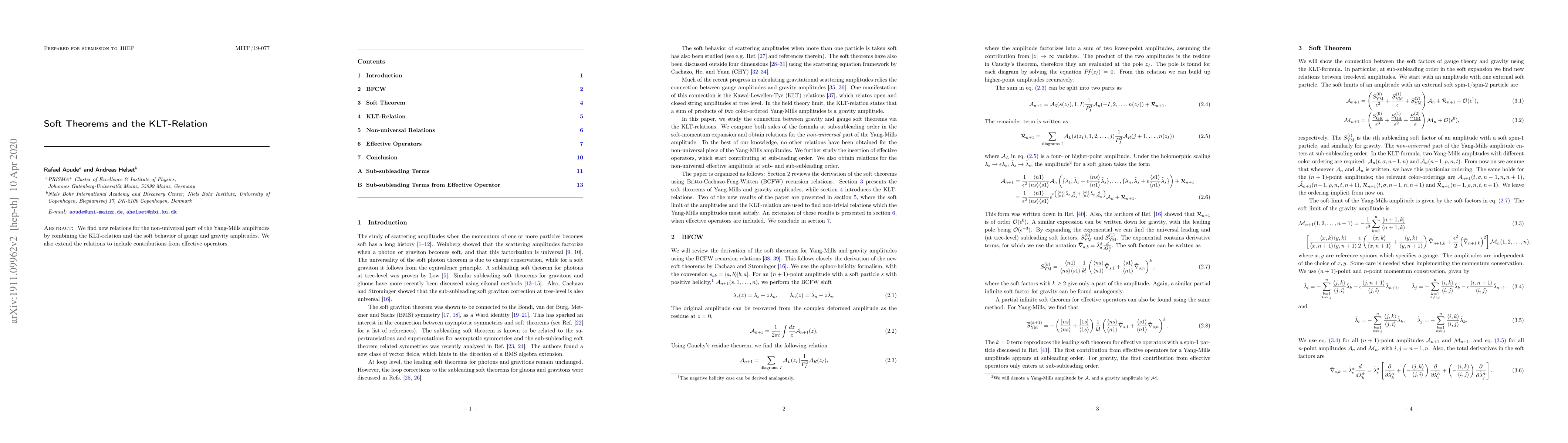 Summary: This paper explores new relations for the non-universal part of Yang-Mills amplitudes by merging the KLT-relation with the soft behavior of gauge and gravity amplitudes, and extends these relations to include contributions from effective operators.