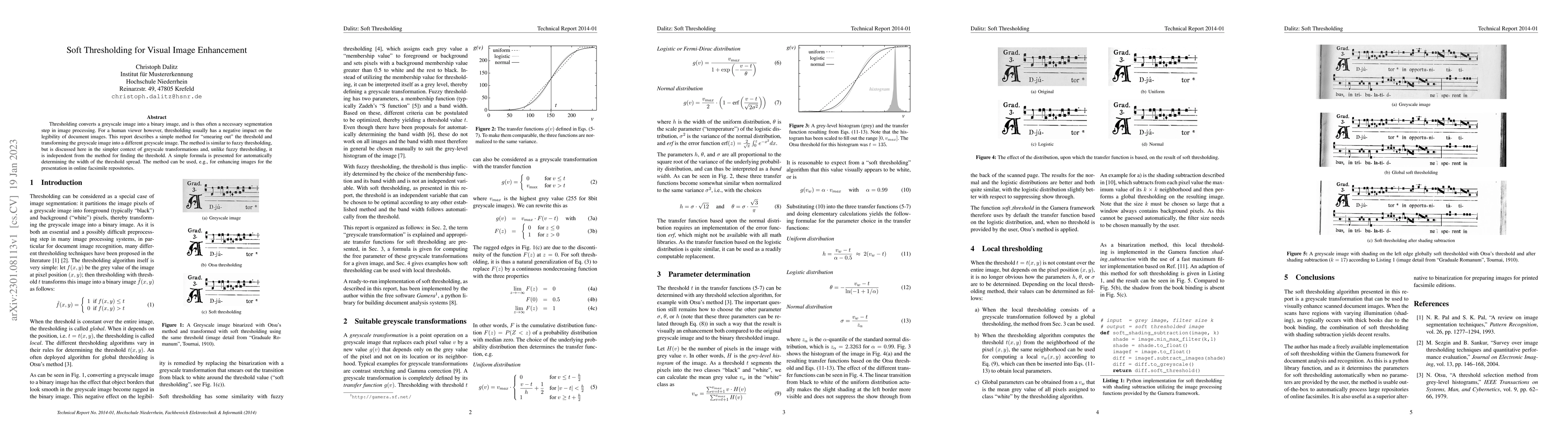 This paper proposes a soft thresholding method to enhance the legibility of document images by transforming greyscale images into a smoother gradient, improving readability without requiring a specific thresholding technique. An automatic formula is provided to determine the optimal threshold spread width.