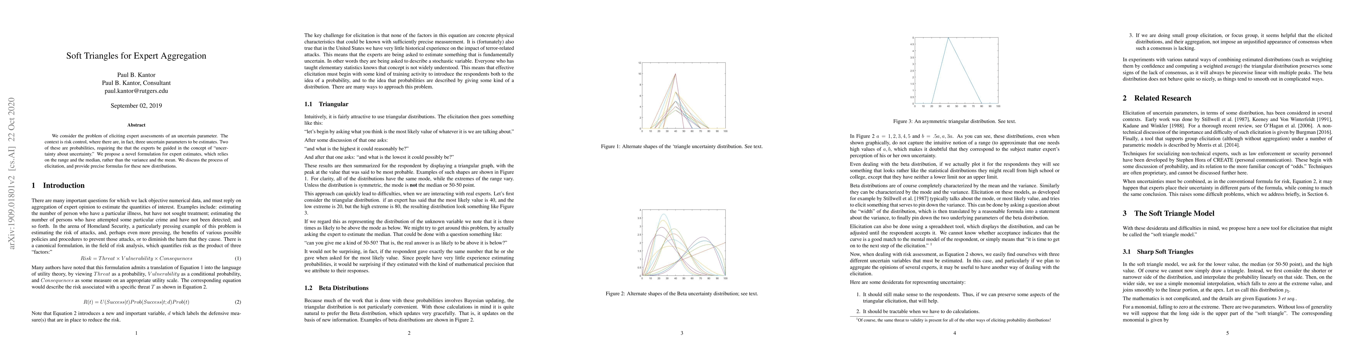 We consider the problem of eliciting expert assessments of an uncertain parameter. The context is risk control, where there are, in fact, three uncertain parameters to be estimates. Two of these are probabilities, requiring the that the experts be guided in the concept of "uncertainty about uncertainty." We propose a novel formulation for expert estimates, which relies on the range and the median, rather than the variance and the mean. We discuss the process of elicitation, and provide precise formulas for these new distributions.