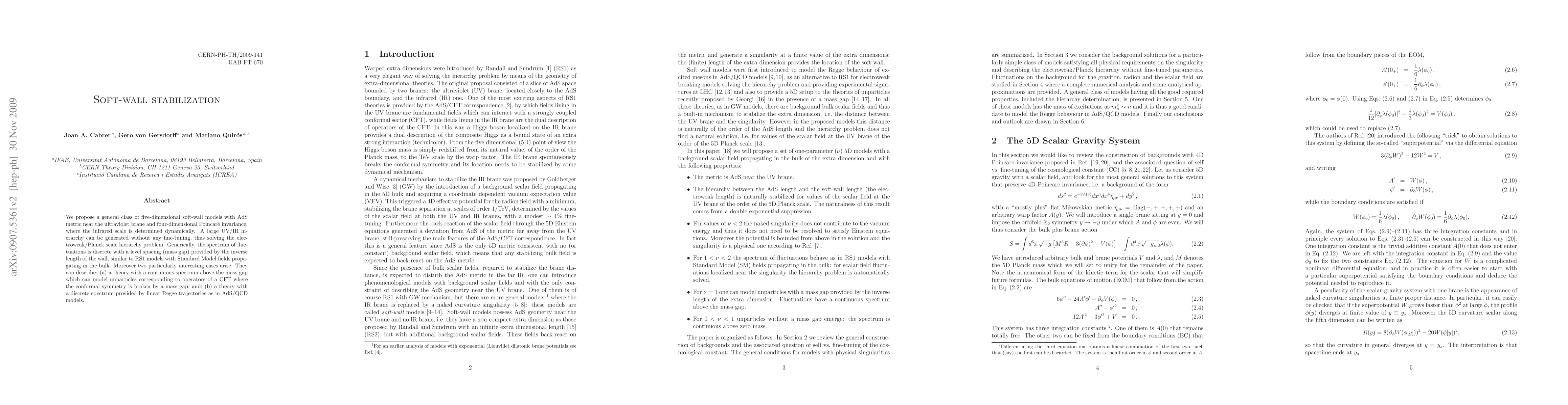 We propose a general class of five-dimensional soft-wall models with AdS metric near the ultraviolet brane and four-dimensional Poincar\'e invariance, where the infrared scale is determined dynamically. A large UV/IR hierarchy can be generated without any fine-tuning, thus solving the electroweak/Planck scale hierarchy problem. Generically, the spectrum of fluctuations is discrete with a level spacing (mass gap) provided by the inverse length of the wall, similar to RS1 models with Standard Model fields propagating in the bulk. Moreover two particularly interesting cases arise. They can describe: (a) a theory with a continuous spectrum above the mass gap which can model unparticles corresponding to operators of a CFT where the conformal symmetry is broken by a mass gap, and; (b) a theory with a discrete spectrum provided by linear Regge trajectories as in AdS/QCD models.