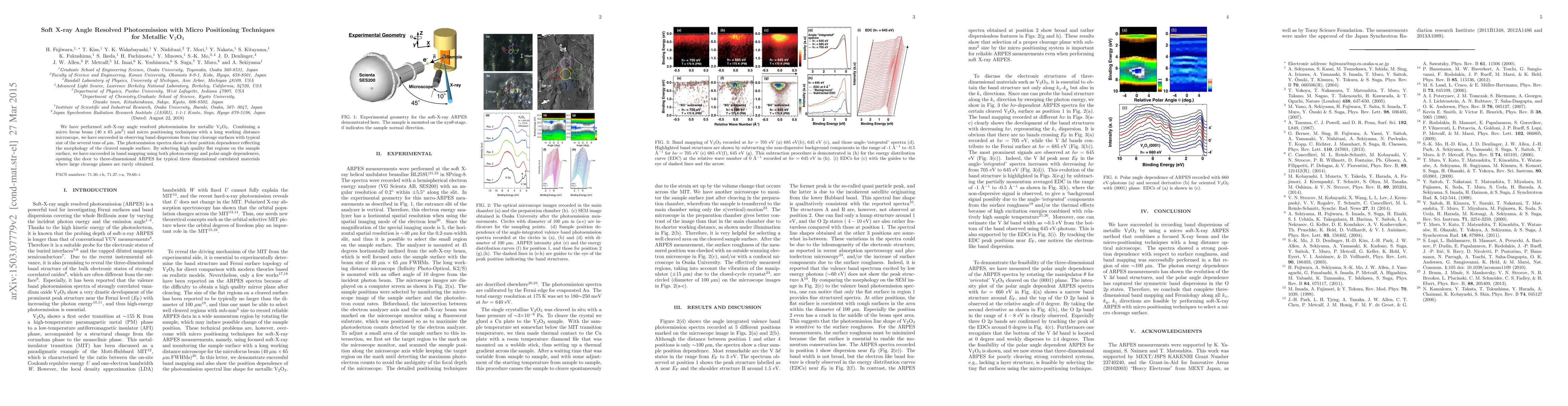 We have performed soft-X-ray angle resolved photoemission for metallic V$_2$O$_3$. Combining a micro focus beam (40 x 65 ${\mu}$m$^2$) and micro positioning techniques with a long working distance microscope, we have succeeded in observing band dispersions from tiny cleavage surfaces with typical size of the several tens of ${\mu}$m. The photoemission spectra show a clear position dependence reflecting the morphology of the cleaved sample surface. By selecting high quality flat regions on the sample surface, we have succeeded in band mapping using both photon-energy and polar-angle dependences, opening the door to three-dimensional ARPES for typical three dimensional correlated materials where large cleavage planes are rarely obtained.