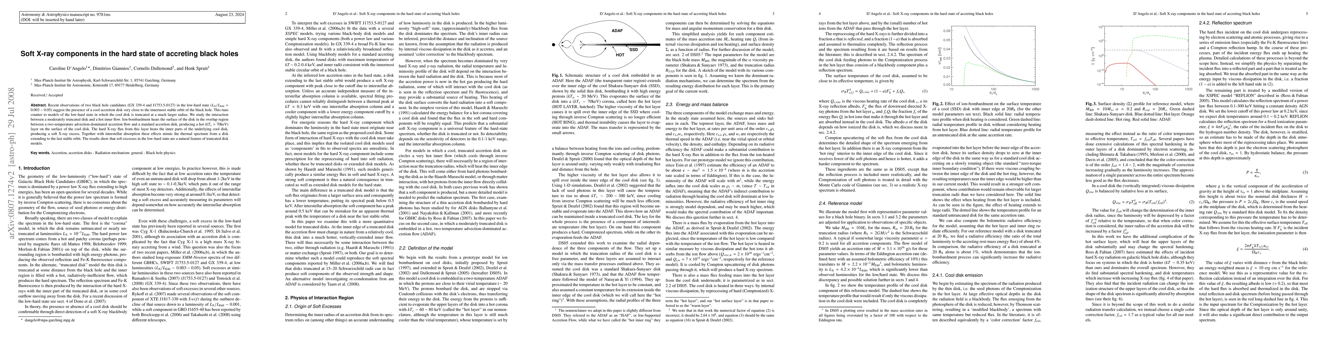 Recent observations of black hole candidates in the low-hard state reveal a cool accretion disk near the black hole's innermost stable orbit, challenging existing models. The study finds that a moderately truncated disk interacting with a hot inner flow produces a hot layer on the disk's surface, generating a soft X-ray excess that mimics a thermal spectrum from a full disk.