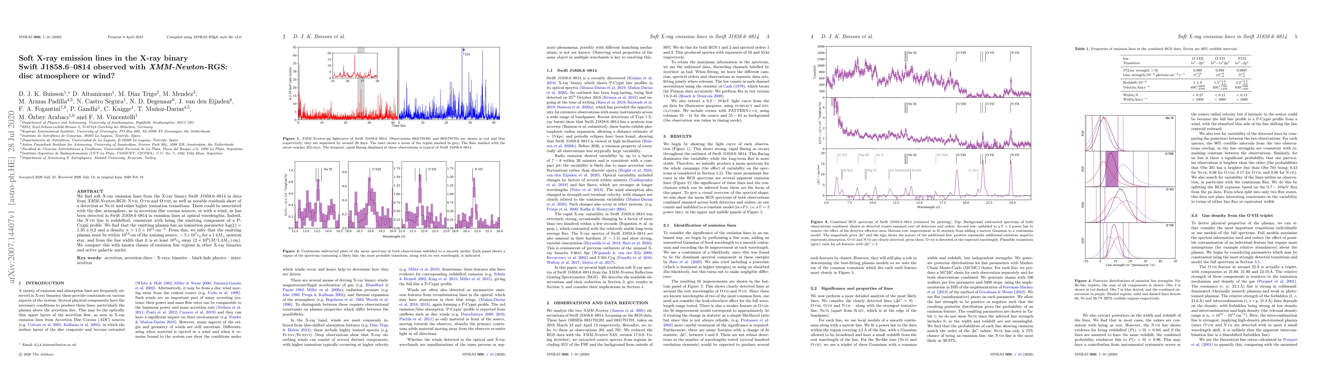 Researchers observed soft X-ray emission lines in X-ray binary Swift J1858.6-0814, finding they could be from a disc atmosphere or wind, with characteristics suggesting a plasma location near the neutron star.