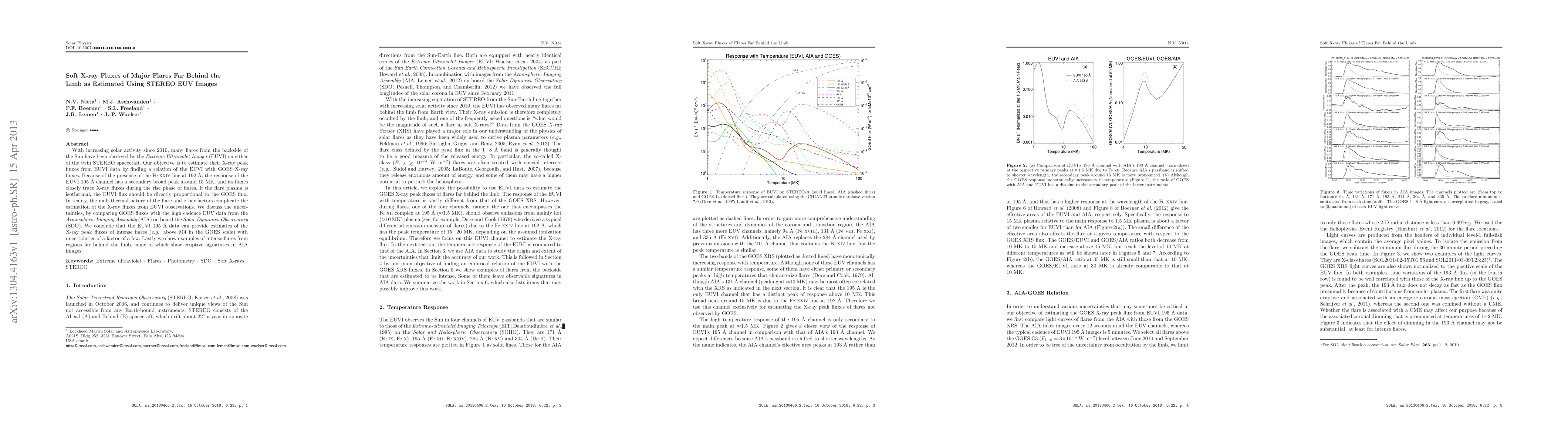 This study estimates the X-ray peak fluxes of major solar flares occurring behind the Sun's limb using STEREO EUVI data, finding a correlation with GOES X-ray fluxes. The EUVI 195 A channel provides reliable estimates for intense flares, though uncertainties remain due to flare multithermal nature and other factors.