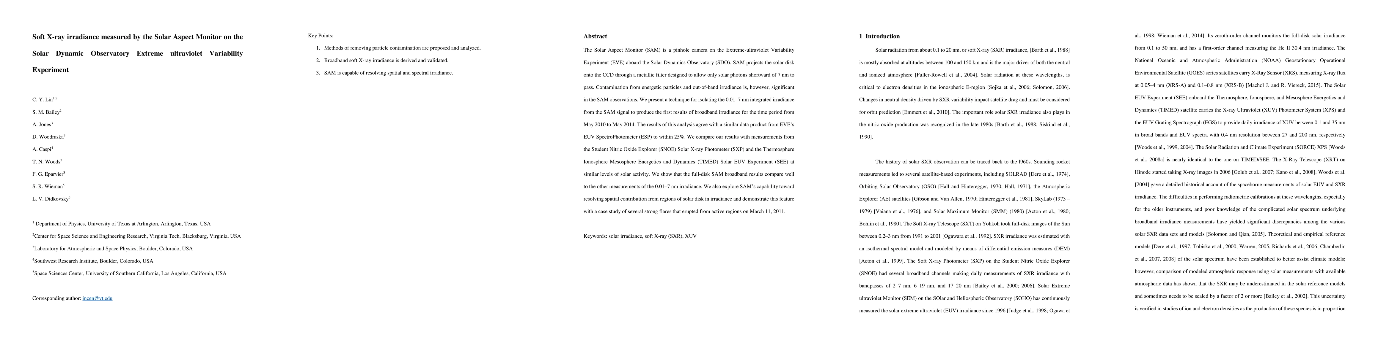 This paper presents a method for isolating soft X-ray irradiance from the Solar Aspect Monitor (SAM) on the Solar Dynamics Observatory, yielding broadband irradiance results from May 2010 to May 2014. The results compare favorably with other instruments, demonstrating SAM's potential for spatial resolution of solar flares.