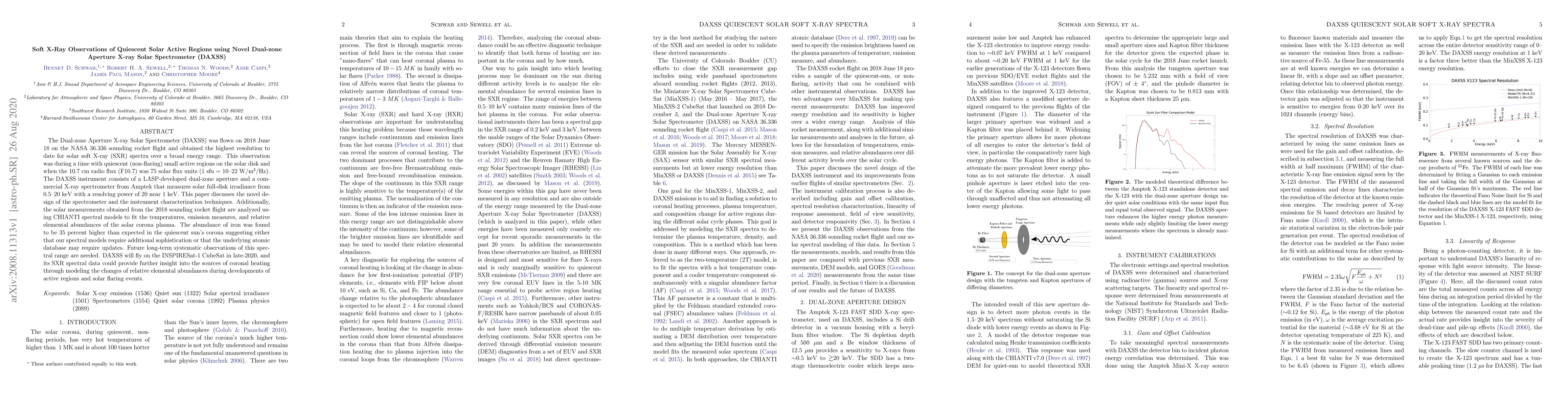 This paper reports on the highest resolution soft X-ray spectra obtained by the DAXSS instrument during a NASA sounding rocket flight in 2018, revealing an iron abundance 35% higher than expected in quiescent solar active regions. Future observations aim to model coronal heating and elemental abundances during solar activity.