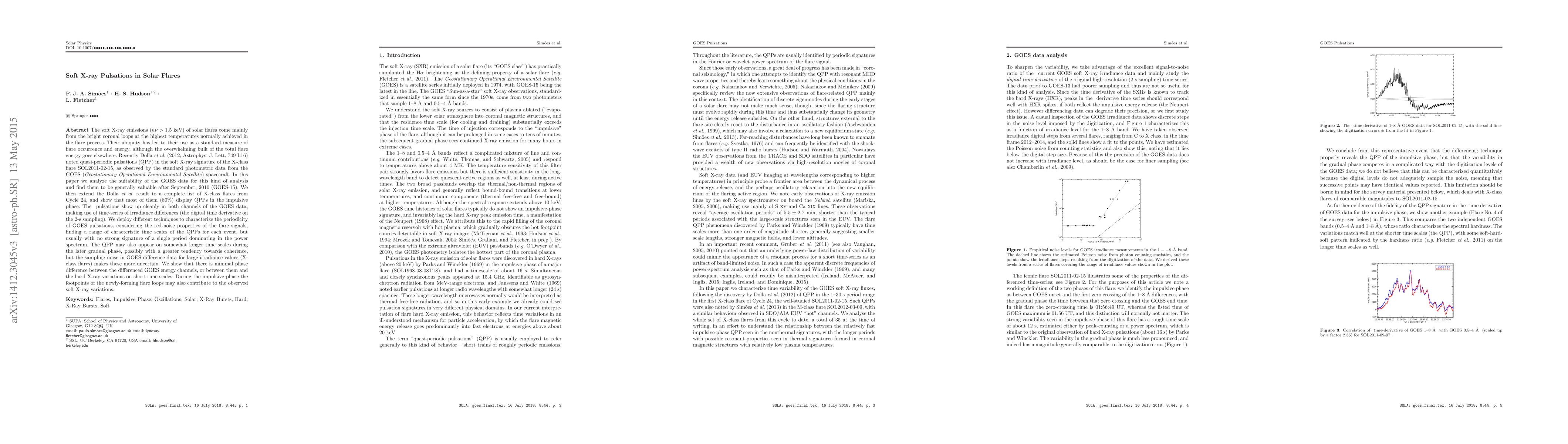 This paper analyzes the soft X-ray pulsations in X-class solar flares observed by GOES-15, finding that 80% of such flares exhibit quasi-periodic pulsations (QPP) during the impulsive phase. The study confirms the suitability of GOES data for this analysis and highlights the lack of a dominant period in the QPPs' power spectrum.