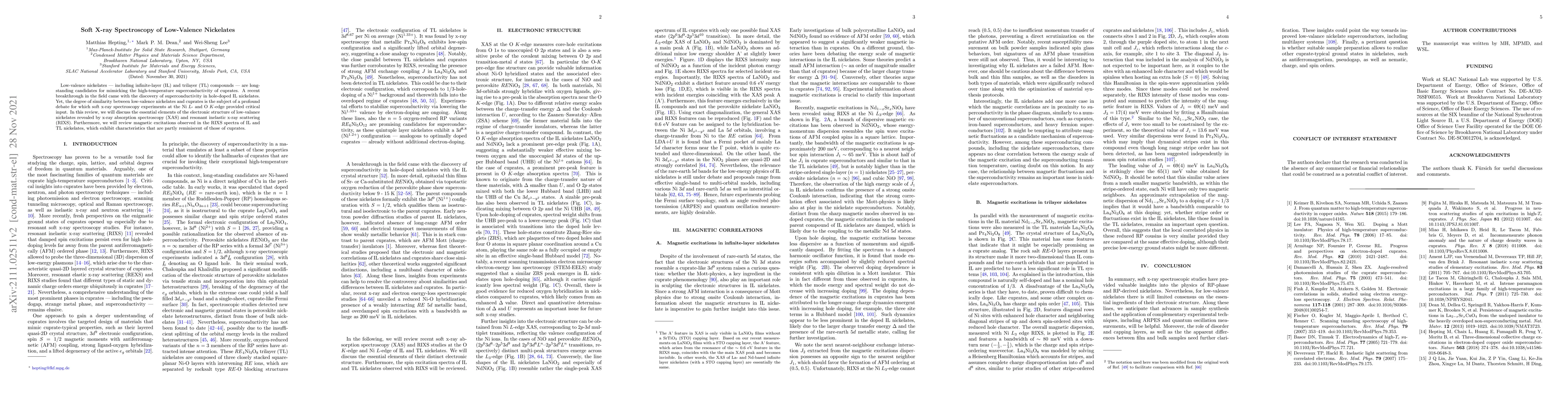 Soft X-ray spectroscopy studies of low-valence nickelates reveal similarities in electronic structure to high-temperature superconductors like cuprates. These findings provide critical insights into the magnetic excitations and potential for superconductivity in these materials.