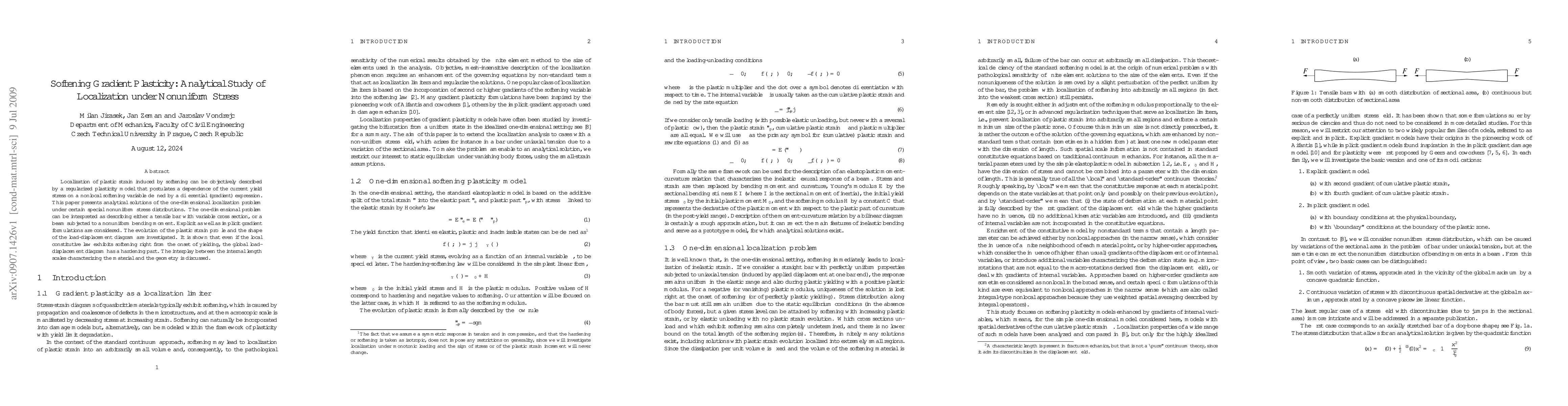 Researchers analyze how plastic strain localization behaves under nonuniform stress distributions, finding that global load-displacement diagrams can exhibit hardening even with softening at the local level.