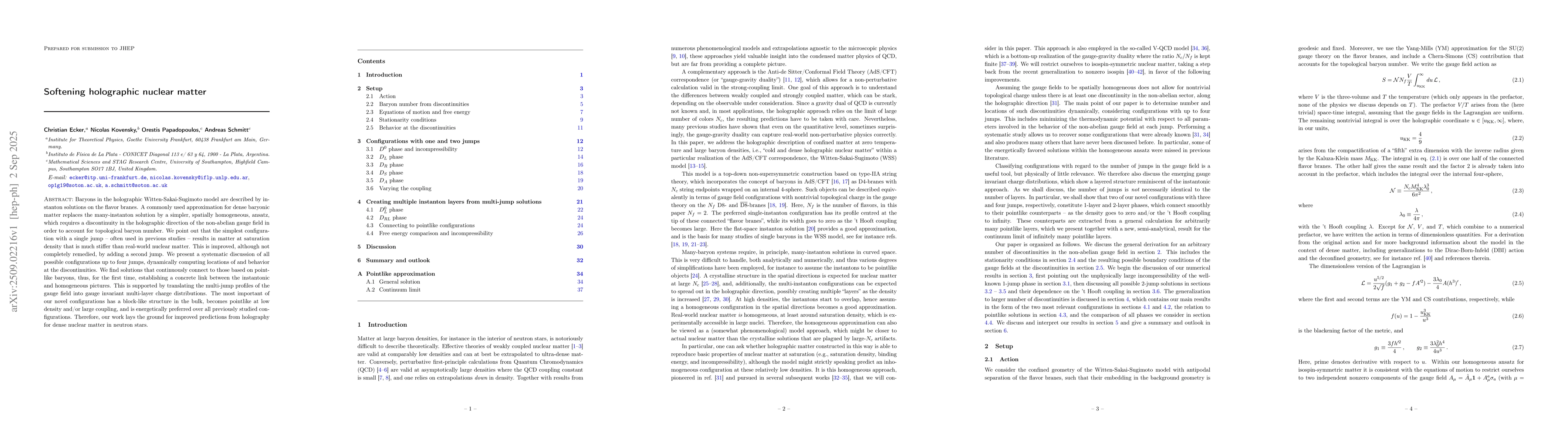 Baryons in the holographic Witten-Sakai-Sugimoto model are described by instanton solutions on the flavor branes. A commonly used approximation for dense baryonic matter replaces the many-instanton solution by a simpler, spatially homogeneous, ansatz, which requires a discontinuity in the holographic direction of the non-abelian gauge field in order to account for topological baryon number. We point out that the simplest configuration with a single jump - often used in previous studies - results in matter at saturation density that is much stiffer than real-world nuclear matter. This is improved, although not completely remedied, by adding a second jump. We present a systematic discussion of all possible configurations up to four jumps, dynamically computing locations of and behavior at the discontinuities. We find solutions that continuously connect to those based on pointlike baryons, thus, for the first time, establishing a concrete link between the instantonic and homogeneous pictures. This is supported by translating the multi-jump profiles of the gauge field into gauge invariant multi-layer charge distributions. The most important of our novel configurations has a block-like structure in the bulk, becomes pointlike at low density and/or large coupling, and is energetically preferred over all previously studied configurations. Therefore, our work lays the ground for improved predictions from holography for dense nuclear matter in neutron stars.