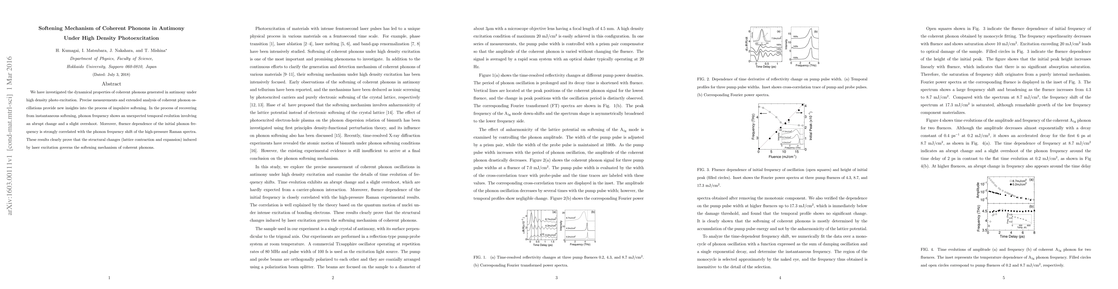 This study investigates the dynamical properties of coherent phonons in antimony under high-density photoexcitation, revealing an impulsive softening process with an unexpected temporal evolution. The findings demonstrate that structural changes induced by laser excitation govern the softening mechanism of coherent phonons.