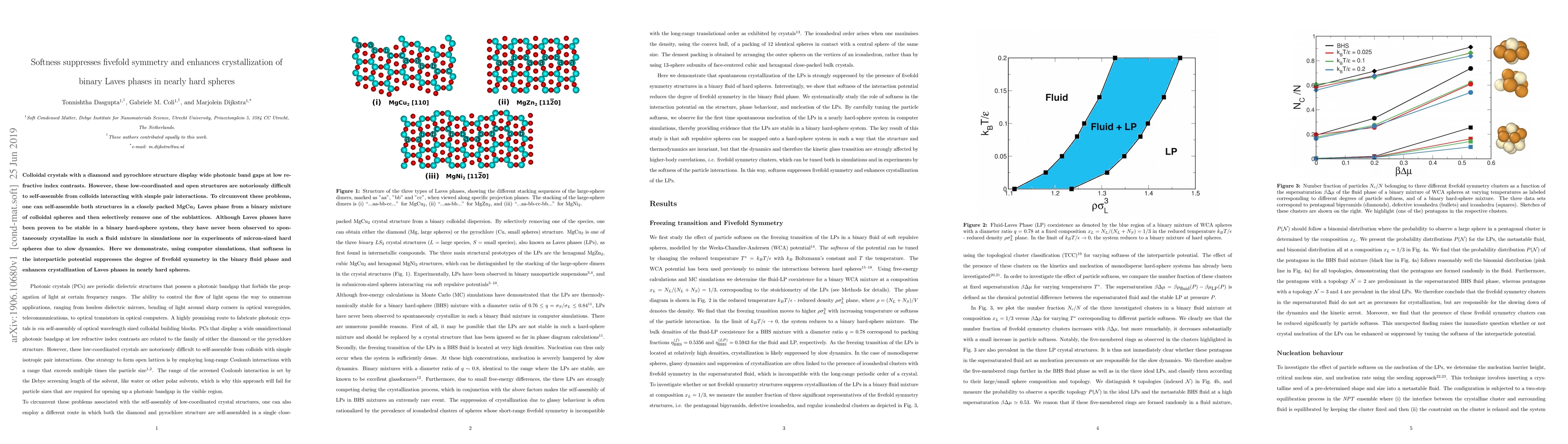 This research demonstrates that softening interparticle potentials in a binary mixture of colloidal spheres can suppress fivefold symmetry and promote the crystallization of Laves phases, which are otherwise difficult to achieve in nearly hard-sphere systems due to slow dynamics. The findings are based on computer simulations.