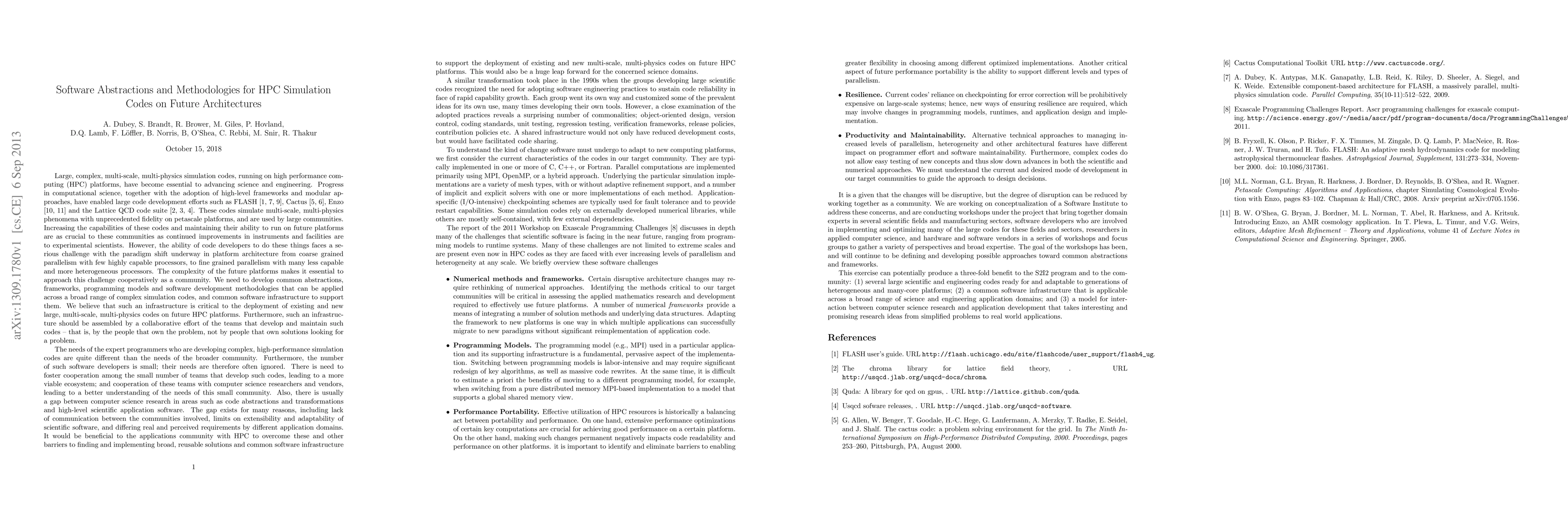 This paper discusses the need for common software abstractions, frameworks, and methodologies to enable the deployment of complex, multi-scale, multi-physics simulation codes on future high-performance computing platforms, emphasizing the importance of collaborative community efforts to address the challenges posed by evolving hardware architectures.