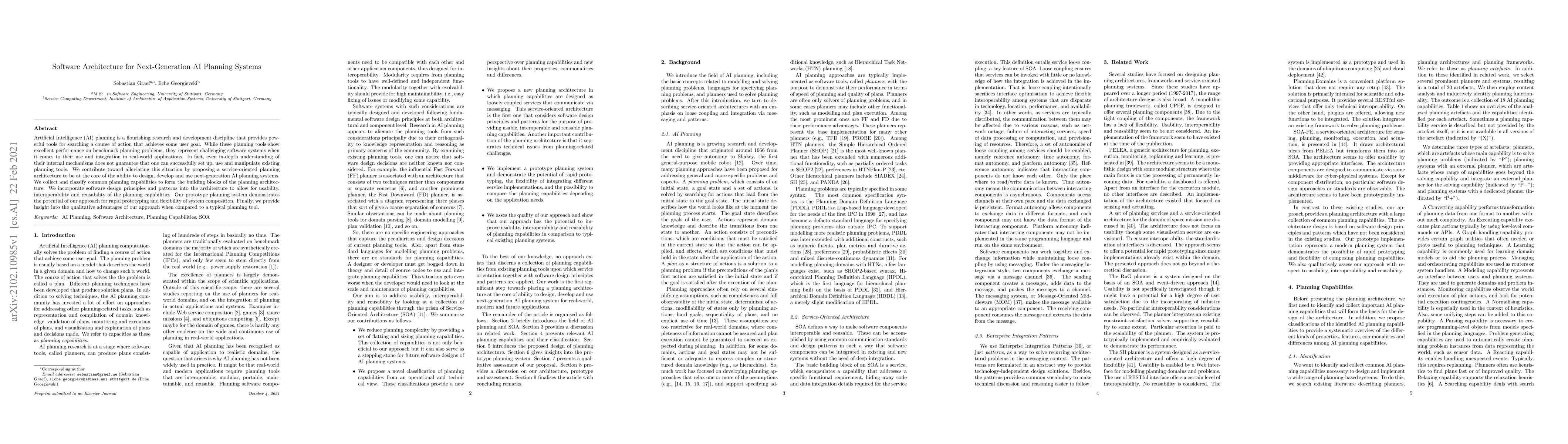 This paper proposes a service-oriented architecture for next-generation AI planning systems, aiming to enhance usability, interoperability, and reusability. The authors introduce a prototype system that showcases the flexibility and advantages of their approach over traditional planning tools.