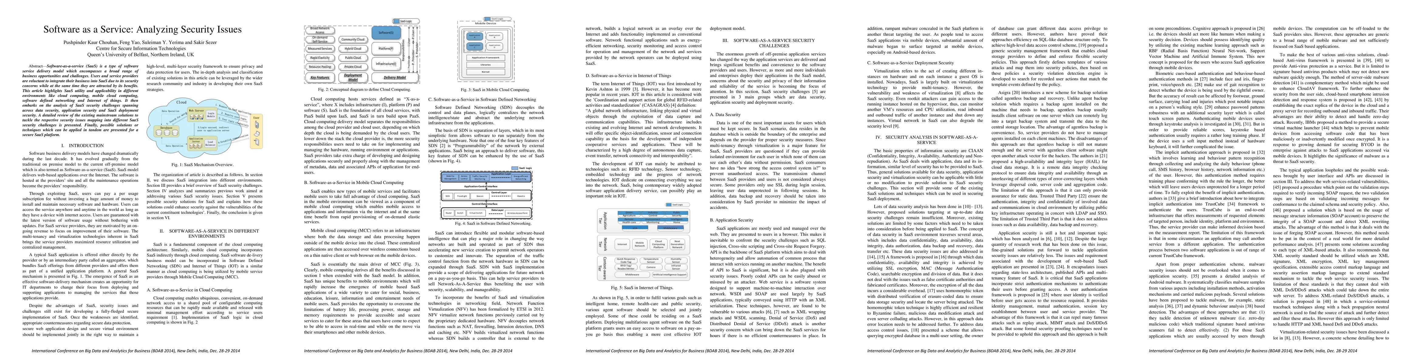 This paper explores the utility and challenges of Software-as-a-Service (SaaS) in various environments, emphasizing its security concerns like data, application, and deployment security. It reviews existing solutions and proposes combined techniques for a secure SaaS platform.
