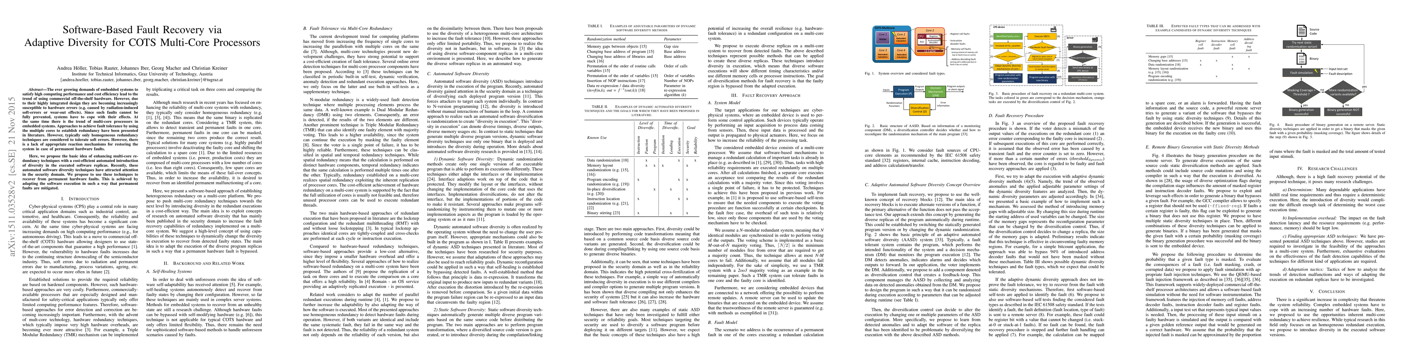 This paper proposes a software-based fault recovery method for commercial-off-the-shelf multi-core processors by introducing adaptive diversity in software replicas to mitigate permanent hardware faults. This approach aims to enhance fault tolerance beyond traditional homogeneous redundancy techniques.