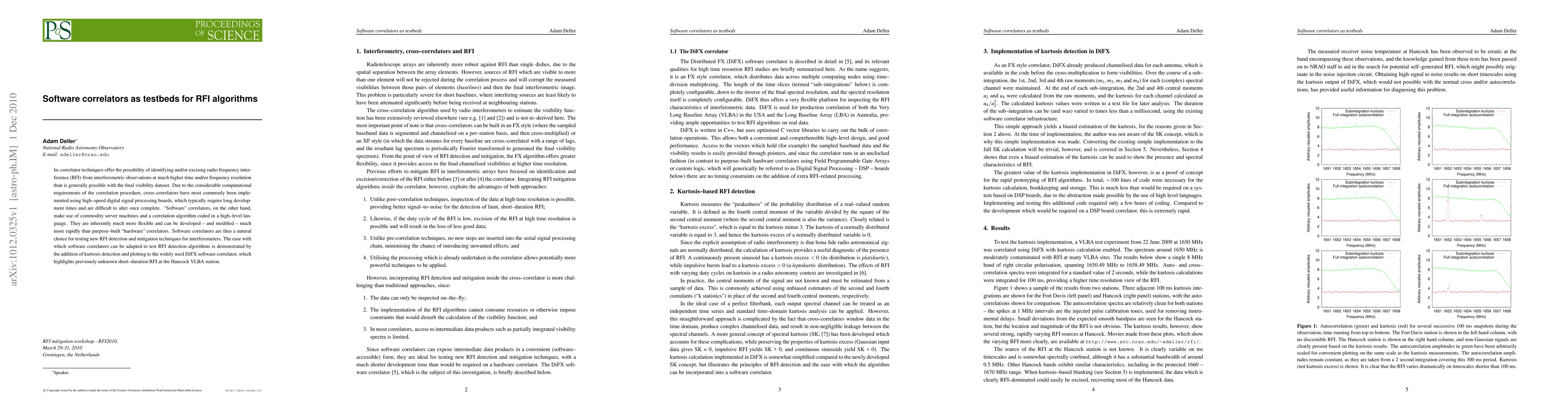 In-correlator techniques offer the possibility of identifying and/or excising radio frequency interference (RFI) from interferometric observations at much higher time and/or frequency resolution than is generally possible with the final visibility dataset. Due to the considerable computational requirements of the correlation procedure, cross-correlators have most commonly been implemented using high-speed digital signal processing boards, which typically require long development times and are difficult to alter once complete. "Software" correlators, on the other hand, make use of commodity server machines and a correlation algorithm coded in a high-level language. They are inherently much more flexible and can be developed - and modified - much more rapidly than purpose-built "hardware" correlators. Software correlators are thus a natural choice for testing new RFI detection and mitigation techniques for interferometers. The ease with which software correlators can be adapted to test RFI detection algorithms is demonstrated by the addition of kurtosis detection and plotting to the widely used DiFX software correlator, which highlights previously unknown short -duration RFI at the Hancock VLBA station.