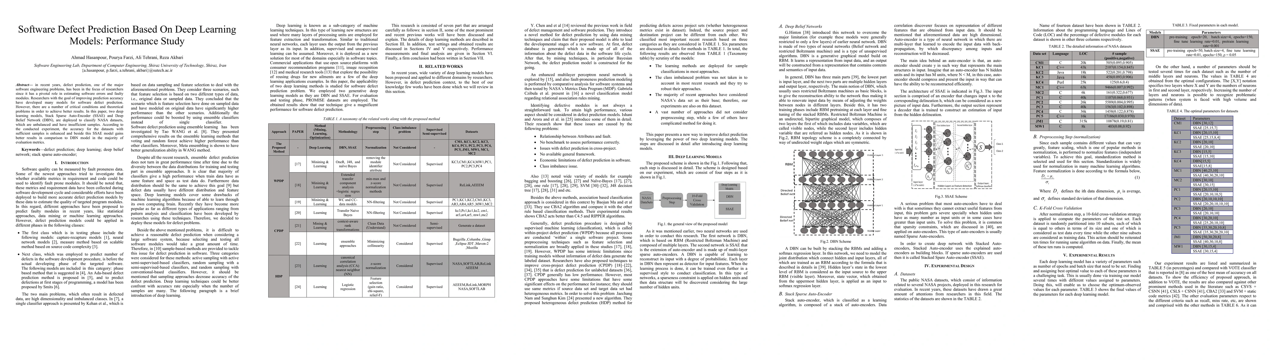 This paper investigates the use of deep learning models, specifically Stack Sparse Auto-Encoder (SSAE) and Deep Belief Network (DBN), for software defect prediction. The results show that SSAE outperforms DBN, particularly in datasets with sufficient samples, enhancing prediction accuracy.
