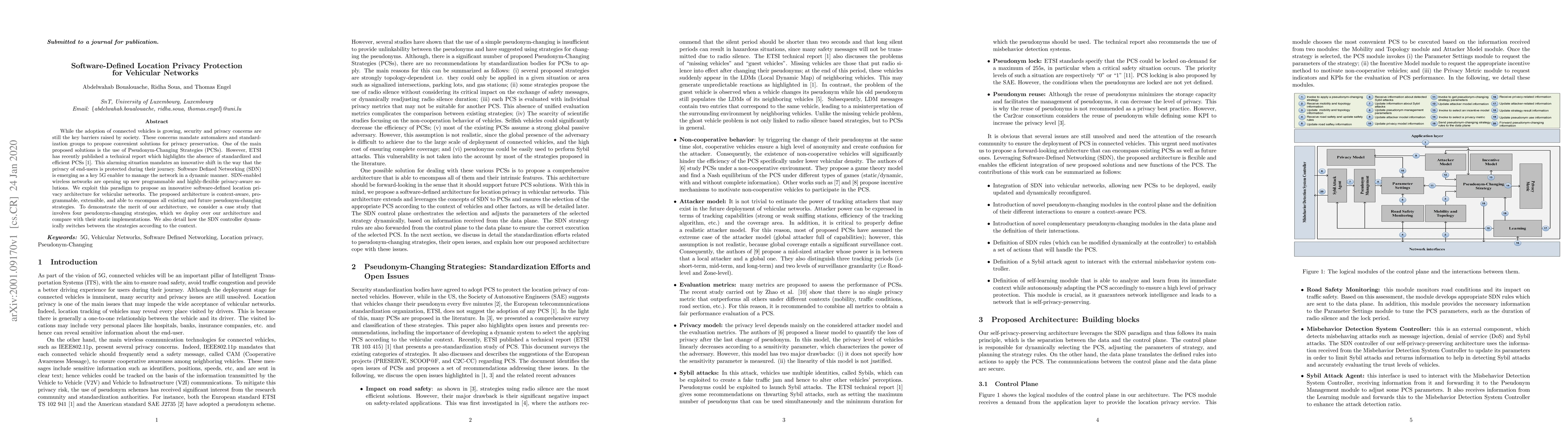 This paper proposes a software-defined location privacy architecture for vehicular networks to address privacy concerns in connected vehicles. The architecture leverages Software-Defined Networking (SDN) to dynamically manage and switch between various pseudonym-changing strategies, demonstrating improved flexibility and efficiency compared to static implementations.