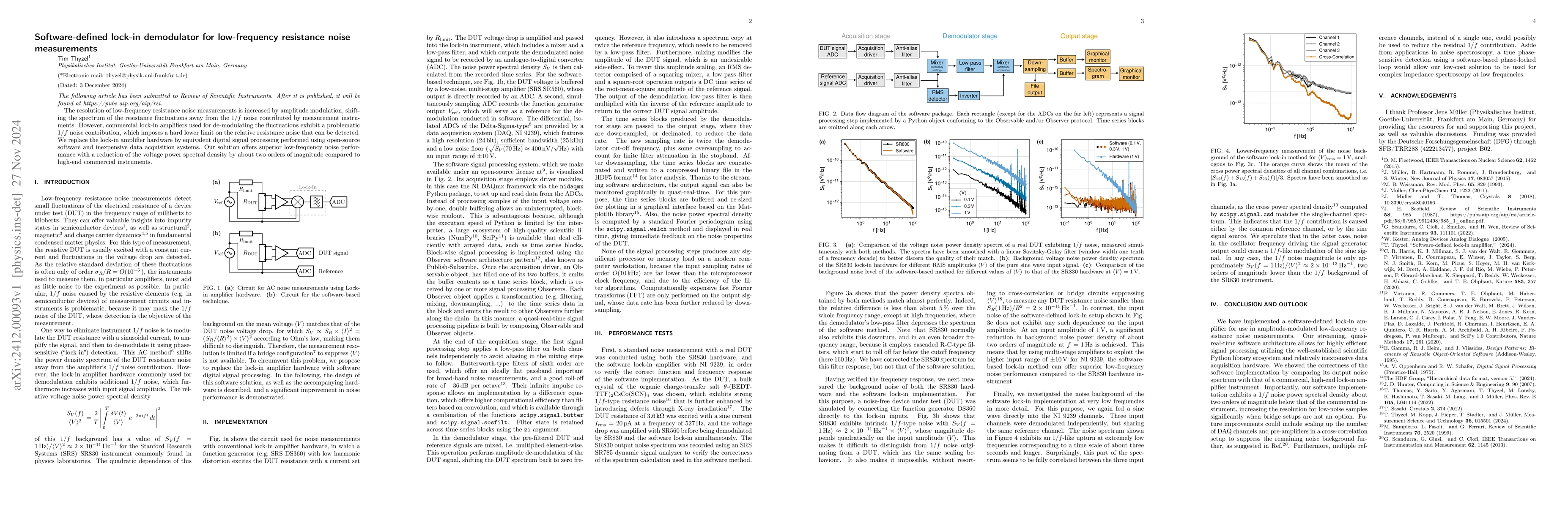 A software-defined lock-in amplifier was implemented for amplitude-modulated low-frequency resistance noise measurements, achieving improved performance and real-time preview capabilities.