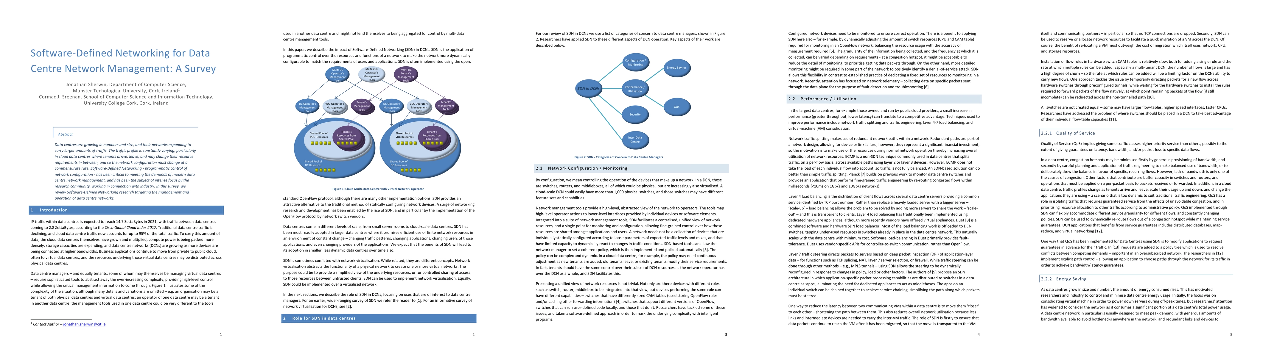 This paper surveys Software-Defined Networking (SDN) research aimed at managing the dynamic and growing traffic profiles of data centre networks, highlighting its importance in responding to the evolving resource demands of cloud tenants. It reviews the current state of SDN in addressing data centre network configuration changes.