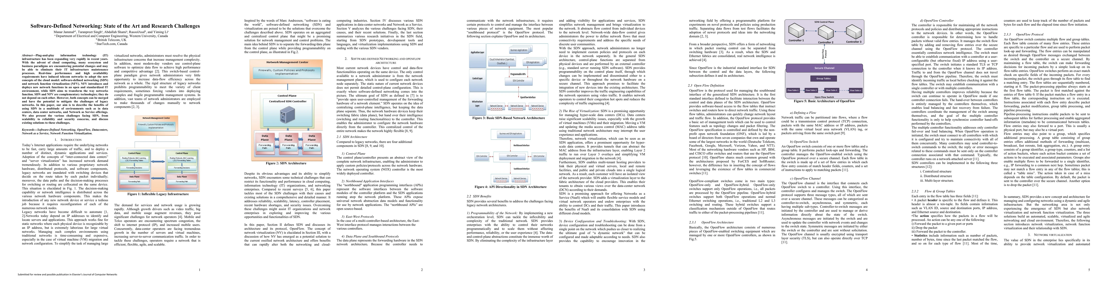 This paper explores the benefits and challenges of software-defined networking (SDN) in various environments, highlighting its potential to transform network functions and improve performance and availability. It also addresses key issues such as scalability, reliability, and security, along with existing solutions to these challenges.