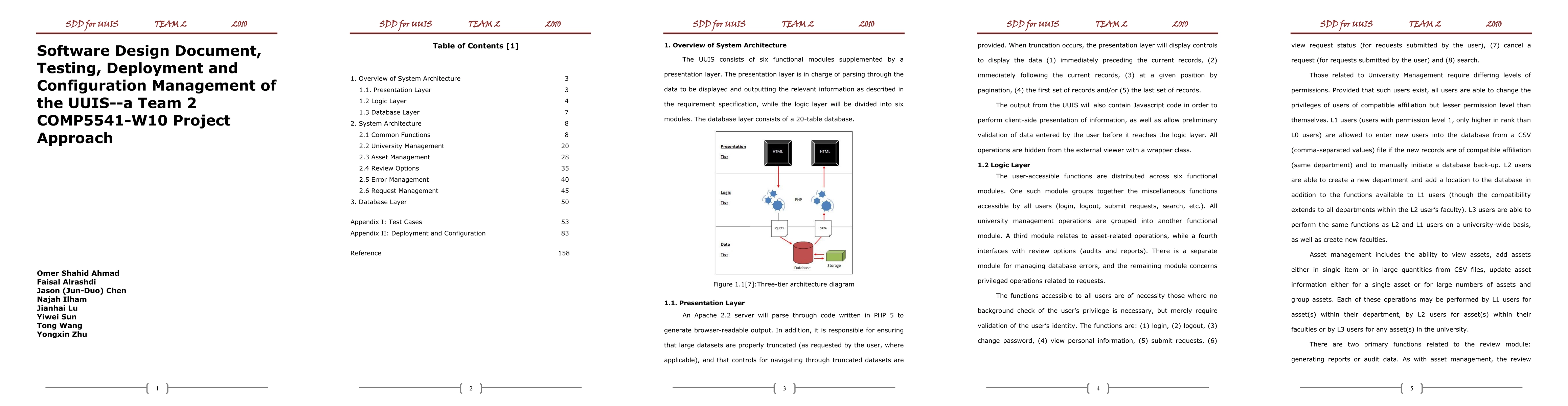 Summary: This document outlines the prototype design and implementation of the UUIS system, detailing its architecture, database, deployment, and configuration management. It also includes test cases developed during the project, with requirements specified in arXiv:1005.0783.