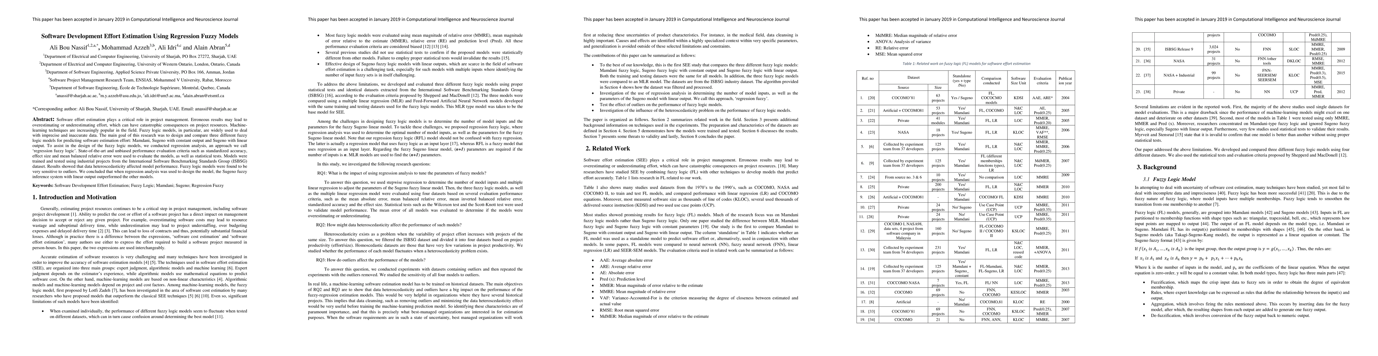 This research compares three fuzzy logic models—Mamdani, Sugeno with constant output, and Sugeno with linear output—for software estimation effort prediction, finding that the Sugeno model with linear output, when designed using regression analysis, outperforms the others. The study highlights the sensitivity of fuzzy logic models to outliers and data heteroscedasticity.