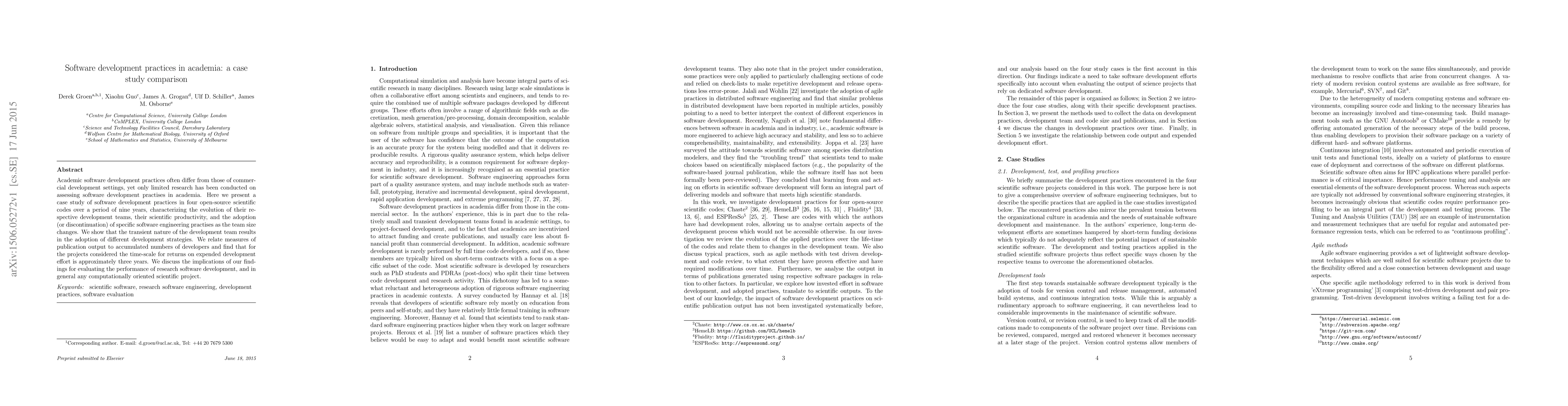 This study examines software development practices in academia through a nine-year case study of four open-source scientific codes, revealing how team dynamics and size influence development strategies and scientific productivity. The research finds a three-year return on development effort, highlighting the transient nature of academic teams and the implications for evaluating research software projects.