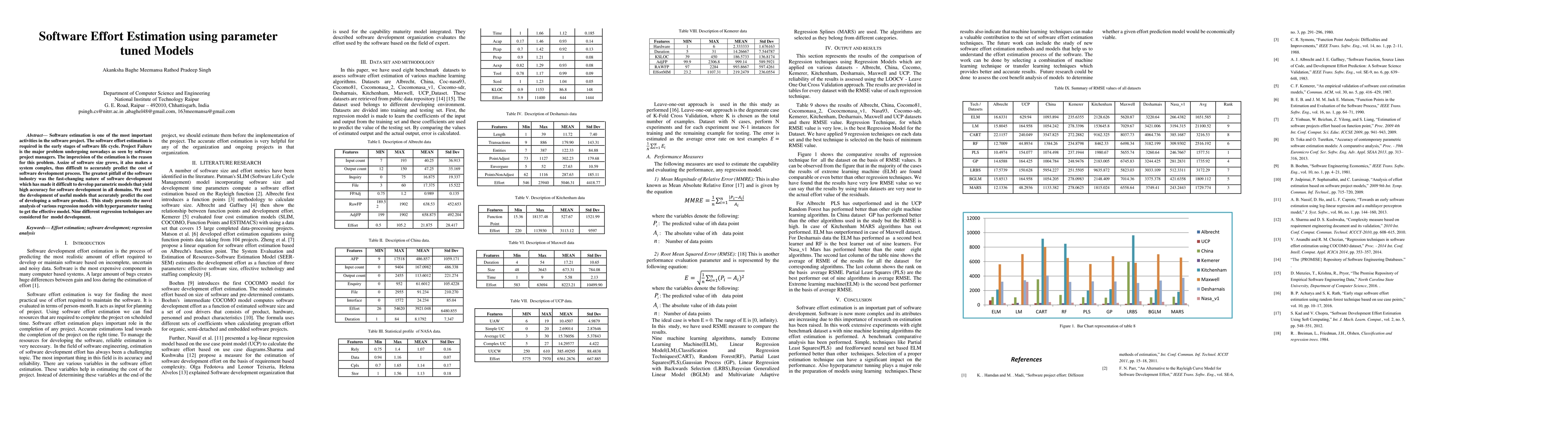 Software estimation is one of the most important activities in the software project. The software effort estimation is required in the early stages of software life cycle. Project Failure is the major problem undergoing nowadays as seen by software project managers. The imprecision of the estimation is the reason for this problem. Assize of software size grows, it also makes a system complex, thus difficult to accurately predict the cost of software development process. The greatest pitfall of the software industry was the fast-changing nature of software development which has made it difficult to develop parametric models that yield high accuracy for software development in all domains. We need the development of useful models that accurately predict the cost of developing a software product. This study presents the novel analysis of various regression models with hyperparameter tuning to get the effective model. Nine different regression techniques are considered for model development