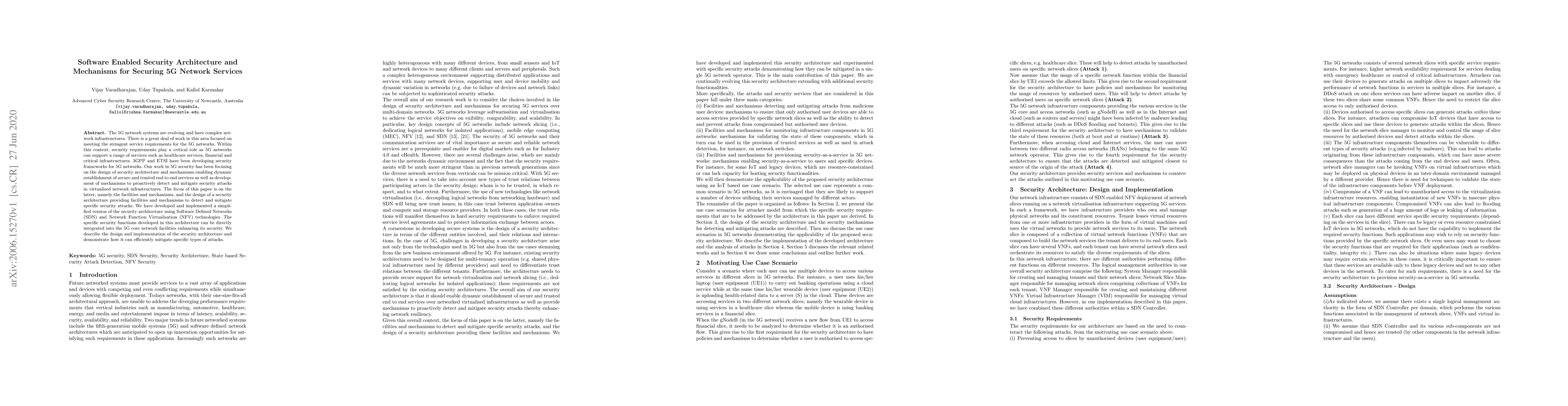 This paper proposes a security architecture using SDN and NFV technologies to detect and mitigate specific security attacks in 5G networks. It details the design and implementation of this architecture, demonstrating its capability to enhance 5G core network security by proactively identifying and responding to threats.