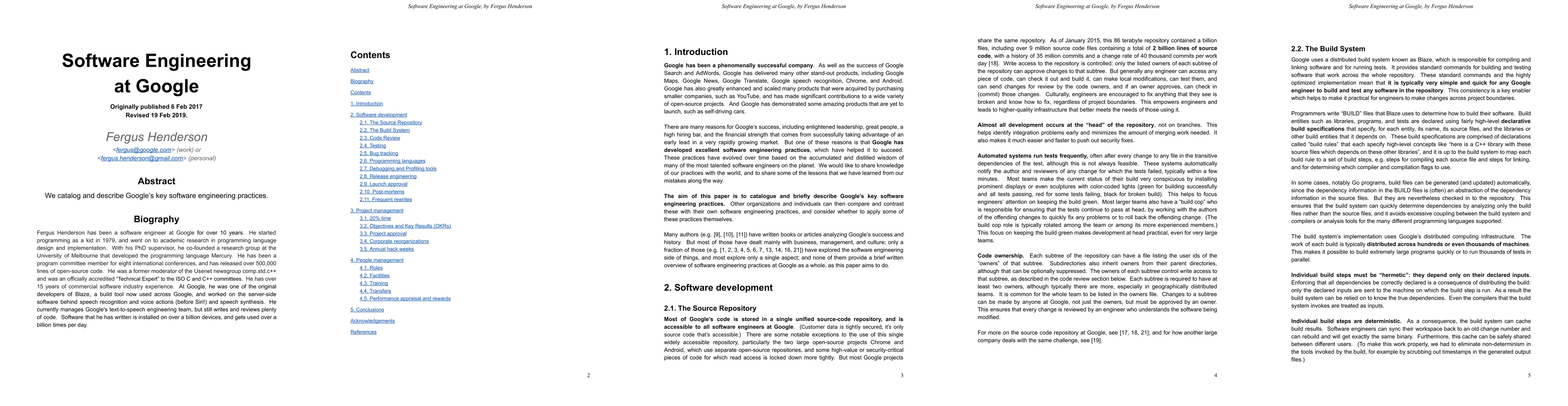 We catalog and describe Google's key software engineering practices.