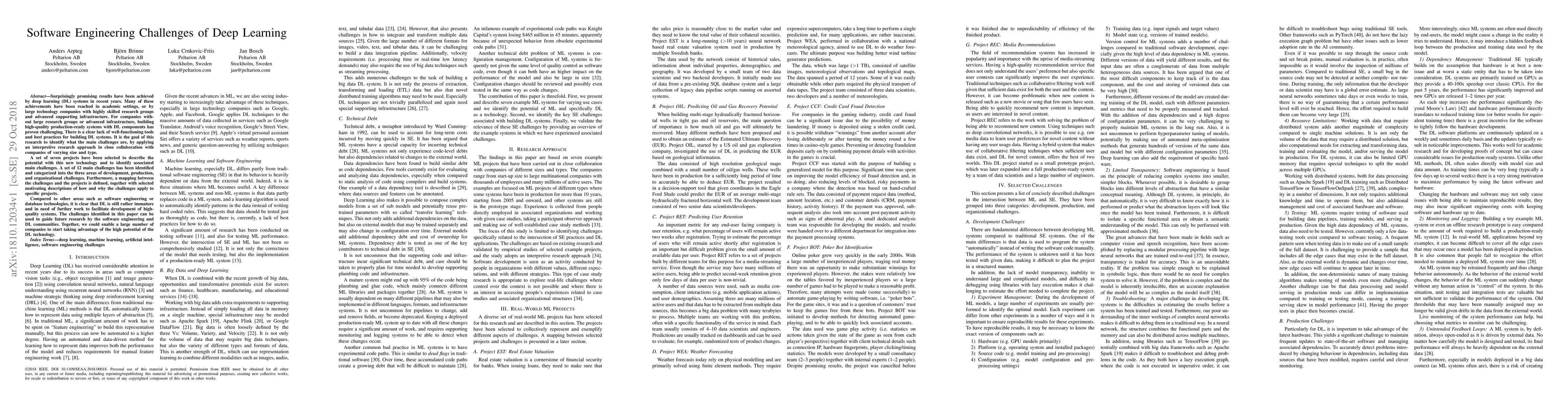 This research identifies the main challenges companies face in developing production-ready deep learning systems, categorizing 12 challenges into development, production, and organizational areas. It highlights the immaturity of deep learning tools and best practices, aiming to guide future research and enable more companies to leverage deep learning technology.